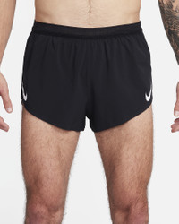 Designed for racing, the 2" AeroSwift shorts help you push through the worst to compete with the best. Their lightweight woven material helps keep the sweat off with every mile and a knit liner gives the support you need. 4 drop-in pockets give a place to stash your gels, snacks and other race-day essentials. More Benefits - Designed for Racing - Length: 2" - Liner: Knit liner - Fabric: Lightweight woven - Storage: Drop-in pockets and zippered back pocket - Waistband: Elastic with drawcord Product Details - Body: 88% polyester/12% spandex. Elastic: 73% nylon/27% spandex. Lining: 89% polyester/11% spandex. - Machine wash - Imported - Not intended for use as Personal Protective Equipment (PPE) - Shown: Black/Summit White - Style: FN3349-010 SIZE & FIT Model is wearing size M and is 6′1″185cm Standard fit: easy and traditional