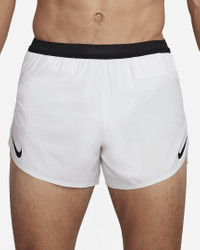 Designed for racing, the 4" AeroSwift shorts help you push through the worst to compete with the best. Their lightweight woven material helps wick sweat with every mile, and a knit liner gives the support you need. A total of 4 drop-in pockets give you a place to stash your gels, snacks and other race-day essentials. More Benefits - Designed for Racing - Length: 4" - Liner: Knit liner - Fabric: Lightweight woven - Storage: 4 drop-in pockets and zippered back pocket - Waistband: Elastic with drawcord Product Details - Body: 88% polyester/12% spandex. Elastic: 73% nylon/27% spandex. Lining: 89% polyester/11% spandex - Machine wash - Imported - Not intended for use as Personal Protective Equipment (PPE) - Shown: Summit White/Black - Style: FN3352-121 SIZE & FIT Model is wearing size M and is 6′2″188cm Standard fit: easy and traditional