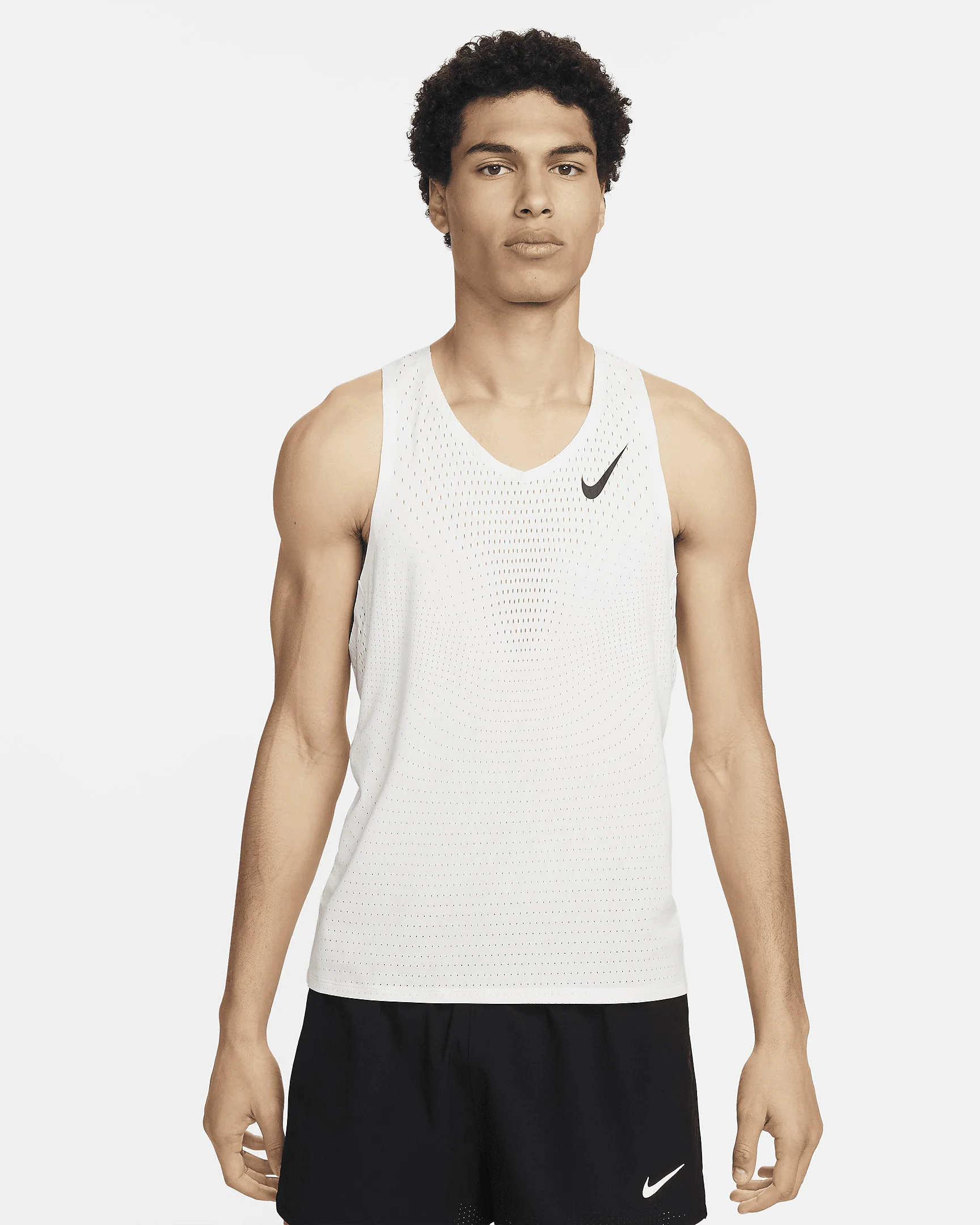 You've pushed through the worst to compete with the best. So let the ultra-breathable feel of our AeroSwift singlet take you across the finish. Designed for racing, this lightweight and smooth top uses our most innovative technologies so you can focus on beating your personal bests. More Benefits - Swoosh logos have a nonreflective finish to protect against flash photography during the race. Product Details - 100% polyester - Machine wash - Imported - Shown: Summit White/Black - Style: FN4231-121 SIZE & FIT Model is wearing size M and is 6′2″188cm Sm fit: sleek and tailored