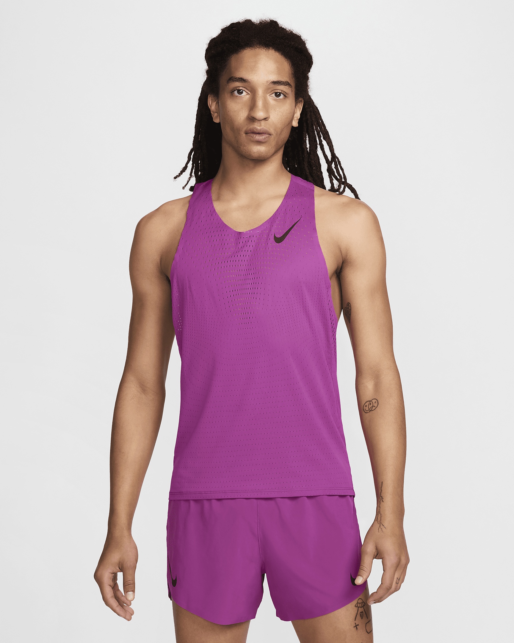 You've pushed through the worst to compete with the best. So let the ultra-breathable feel of our AeroSwift singlet take you across the finish. Designed for racing, this lightweight and smooth top uses our most innovative technologies so you can focus on beating your personal bests. More Benefits - Swoosh logos have a nonreflective finish to protect against flash photography during the race. Product Details - 100% polyester - Machine wash - Imported - Shown: Hot Fuchsia/Black - Style: FN4231-518 SIZE & FIT Model is wearing size M and is 6′0″183cm Sm fit: sleek and tailored