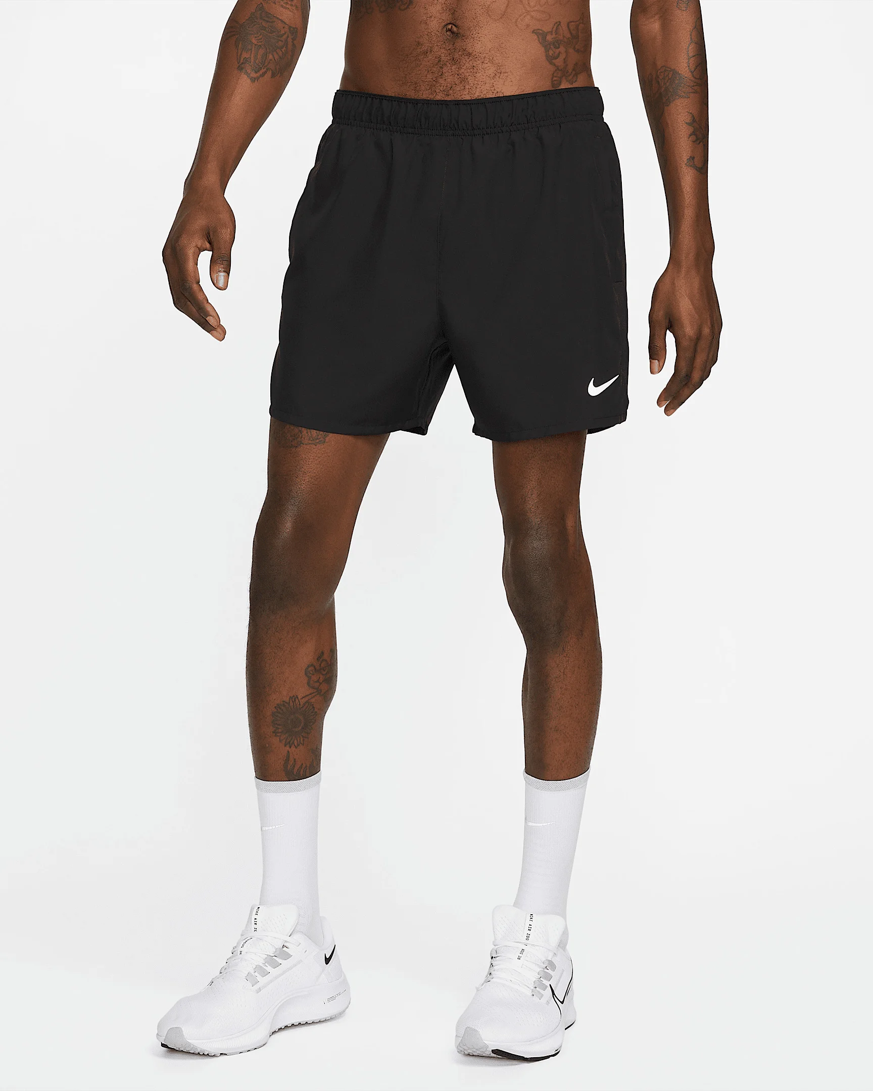 Designed for running, training and yoga, our sweat-wicking Challenger Shorts keep it light and cool with a relaxed fit that helps you get the most out of your movement. We geared them for more than just running—with a comfortable pocket that won't irritate when you move from the track to the gym. More Benefits - Designed for Running, Yoga and Training - Length: 5" - Liner: Brief - Fabric: Lightweight woven - Storage: Side pockets and hook-and-loop back pocket - Waistband: Narrow with drawcord Product Details - Body: 100% polyester. Lining: 92% polyester/8% spandex. - Machine wash - Imported - Not intended for use as Personal Protective Equipment (PPE) - Shown: Black/Black/Black - Style: DV9363-010 SIZE & FIT Model is wearing size M and is 6'1"185cm Big & Tall model is wearing size 2XL and is 6'0"183cm Standard fit: easy and traditional