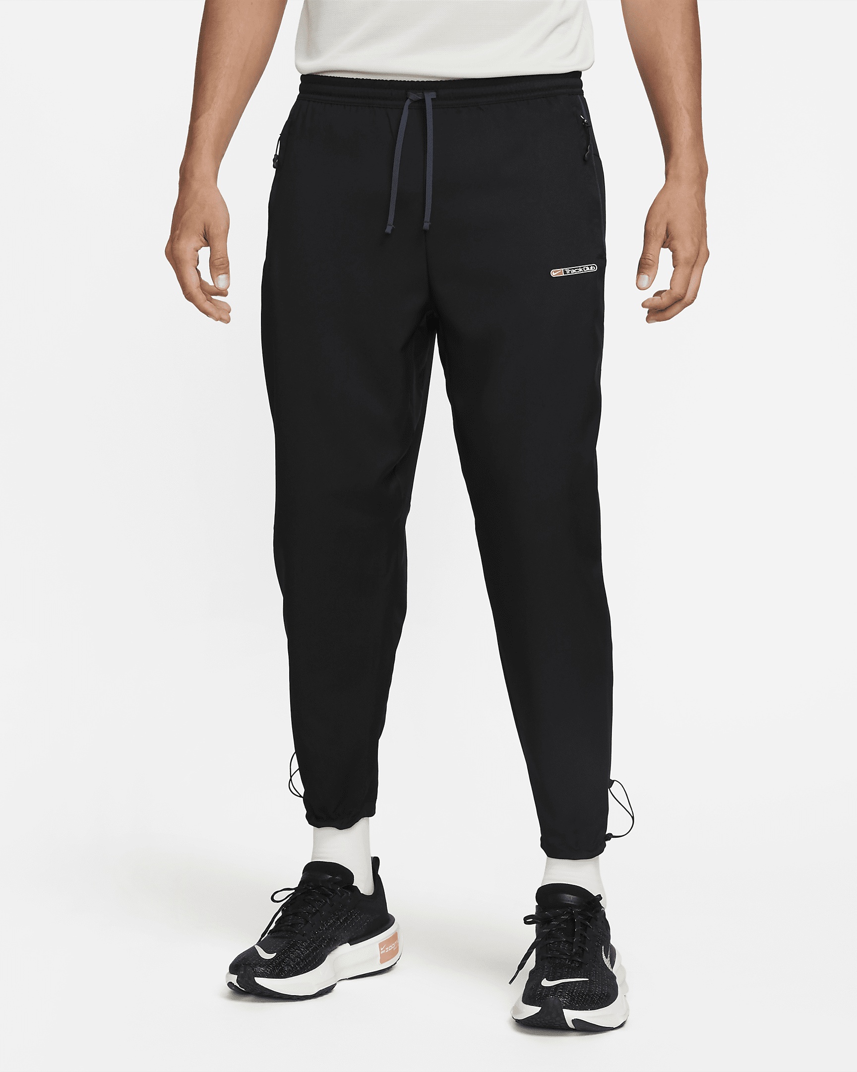 Welcome to the Nike Track Club. Our mission: celebrate the rich history of Nike Running by helping today's athletes and tomorrow's stars in the sport of running. These lightweight, sweat-wicking pants are up for any challenge—no matter the distance. Easy, adjustable cuffs help you slide these on and off after your warmup or run. Benefits - Nike Dri-FIT technology moves sweat away from your skin for quicker evaporation, helping you stay dry and comfortable. - Soft fabric is lightweight and breathable. - Zippered pockets help keep your things secure. - Bungee cords at the hem make it easier to change them over your running shoes. - Nike Track Club silicone oval logo is inspired by the shape of a track. Product Details - Elastic waistband with a drawcord - 100% polyester - Machine wash - Imported - Shown: Black/Midnight Navy/Summit White - Style: FB5503-010 SIZE & FIT Model is wearing size M and is 6′2″188cm Standard fit: easy and traditional