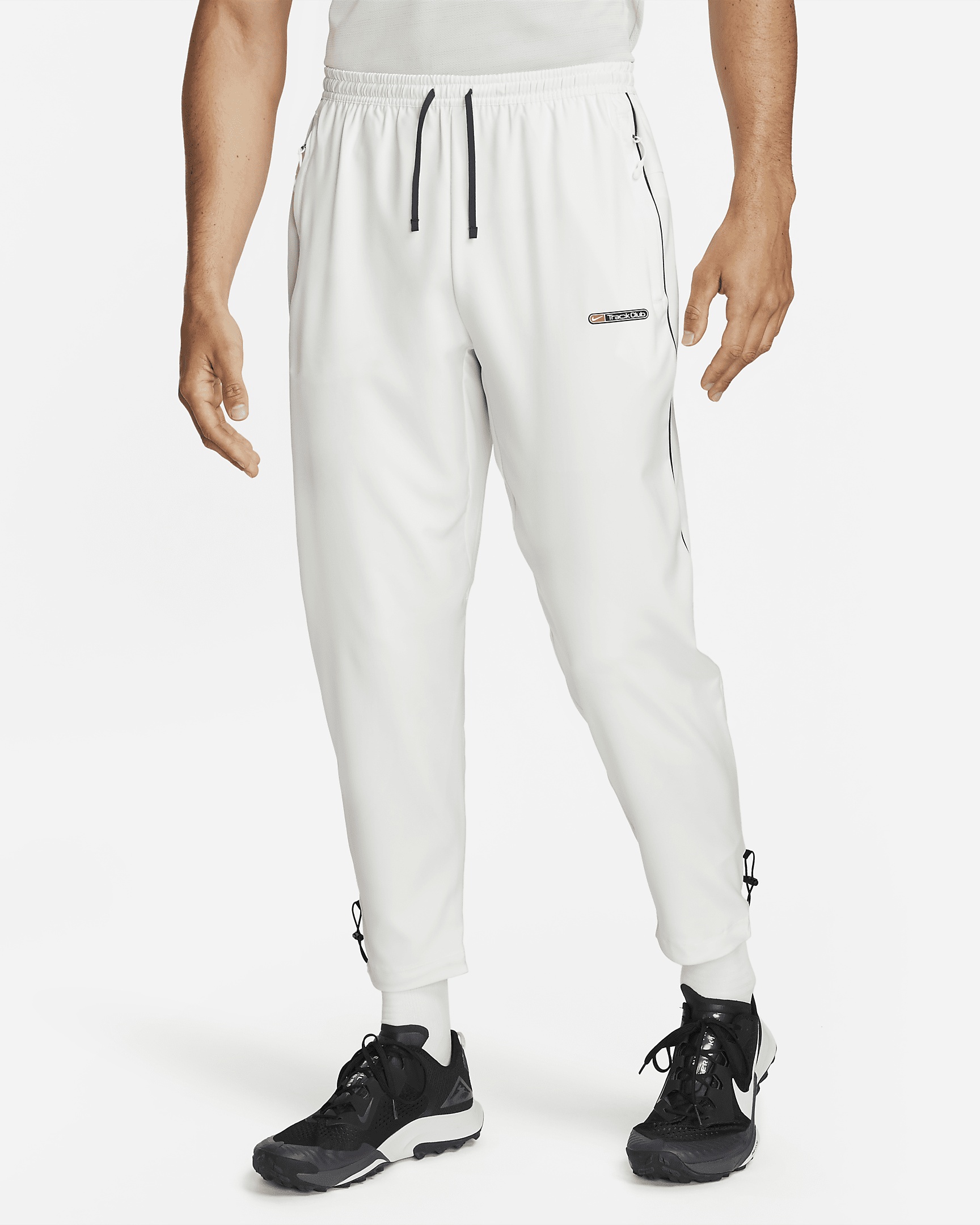 Welcome to the Nike Track Club. Our mission: celebrate the rich history of Nike Running by helping today's athletes and tomorrow's stars in the sport of running. These lightweight, sweat-wicking pants are up for any challenge—no matter the distance. Easy, adjustable cuffs help you slide these on and off after your warmup or run. Benefits - Nike Dri-FIT technology moves sweat away from your skin for quicker evaporation, helping you stay dry and comfortable. - Soft fabric is lightweight and breathable. - Zippered pockets help keep your things secure. - Bungee cords at the hem make it easier to change them over your running shoes. - Nike Track Club silicone oval logo is inspired by the shape of a track. Product Details - Elastic waistband with a drawcord - 100% polyester - Machine wash - Imported - Shown: Summit White/Midnight Navy/Black - Style: FB5503-121 SIZE & FIT Model is wearing size M and is 6′1″185cm Standard fit: easy and traditional