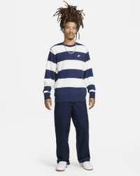 Soft and breathable, this comfy crew from our Nike Club Fleece collection brings some classic color into your everyday essentials. The relaxed fit gives you a bit of room through the chest and body for laid-back comfort. Benefits - This midweight French terry fabric (with unbrushed loops on the inside) gives structure, breathability and softness—so it's just as ready for the gym as it is for the couch. - Designed to feel relaxed through the chest and body for casual, daily comfort. Product Details - Embroidered Nike Futura logo at left chest - Ribbed hem and cuffs - 100% cotton - Machine wash - Imported - Shown: Midnight Navy/Sail/White - Style: FN3106-410 SIZE & FIT Standard fit: easy and traditional