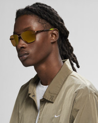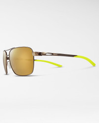 Performance meets comfort with the Nike Club Premier Sunglasses. The flexible, innovative hinge provides an adaptable fit in a classic navigator shape. Benefits - Flexible hinge offers adaptable comfort and durability. - Adjustable rubber temple arms provide enhanced grip and fit. Product Details - Adjustable nose bridge - Combination metal and injected frame materials - Shown: Walnut/Volt - Style: DQ0921-227