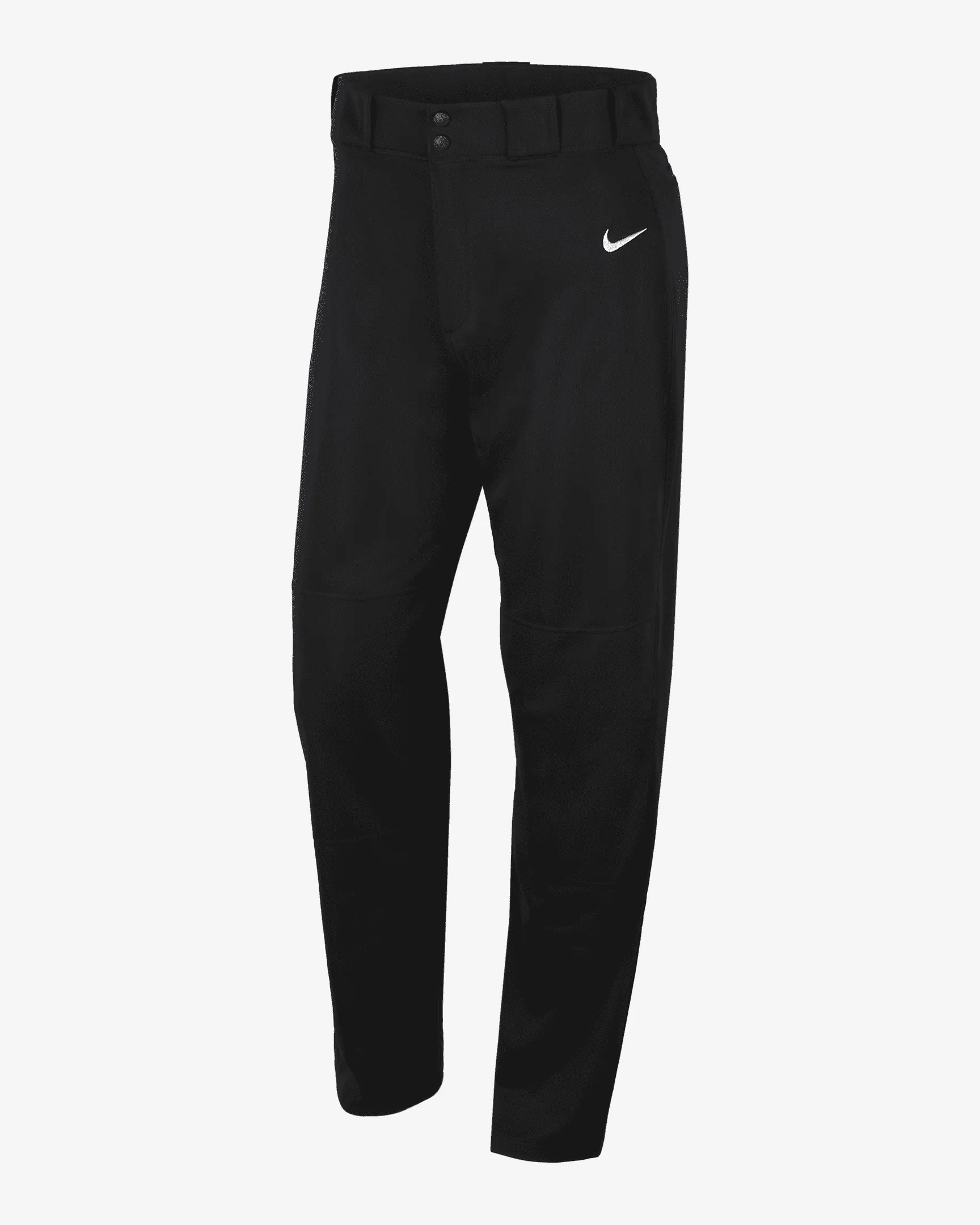 The Nike Core Pants are lightweight but tough enough to slide in. A looser design at the ankles gives you room to breathe, while sweat-wicking technology helps keep you cool, even when the competition heats up. Benefits - Snap closures and a zippered fly provide a secure fit. - The elastic waistband features belt loops, so you can accessorize for a more custom fit. - Articulated knees and open hems lend a natural feel. - Back pockets let you store batting gloves and small items. Product Details - Slim fit for a tailored feel - 100% polyester. - Machine wash - Imported - Shown: Black/White - Style: AA9796-010 SIZE & FIT Sm fit: sleek and tailored