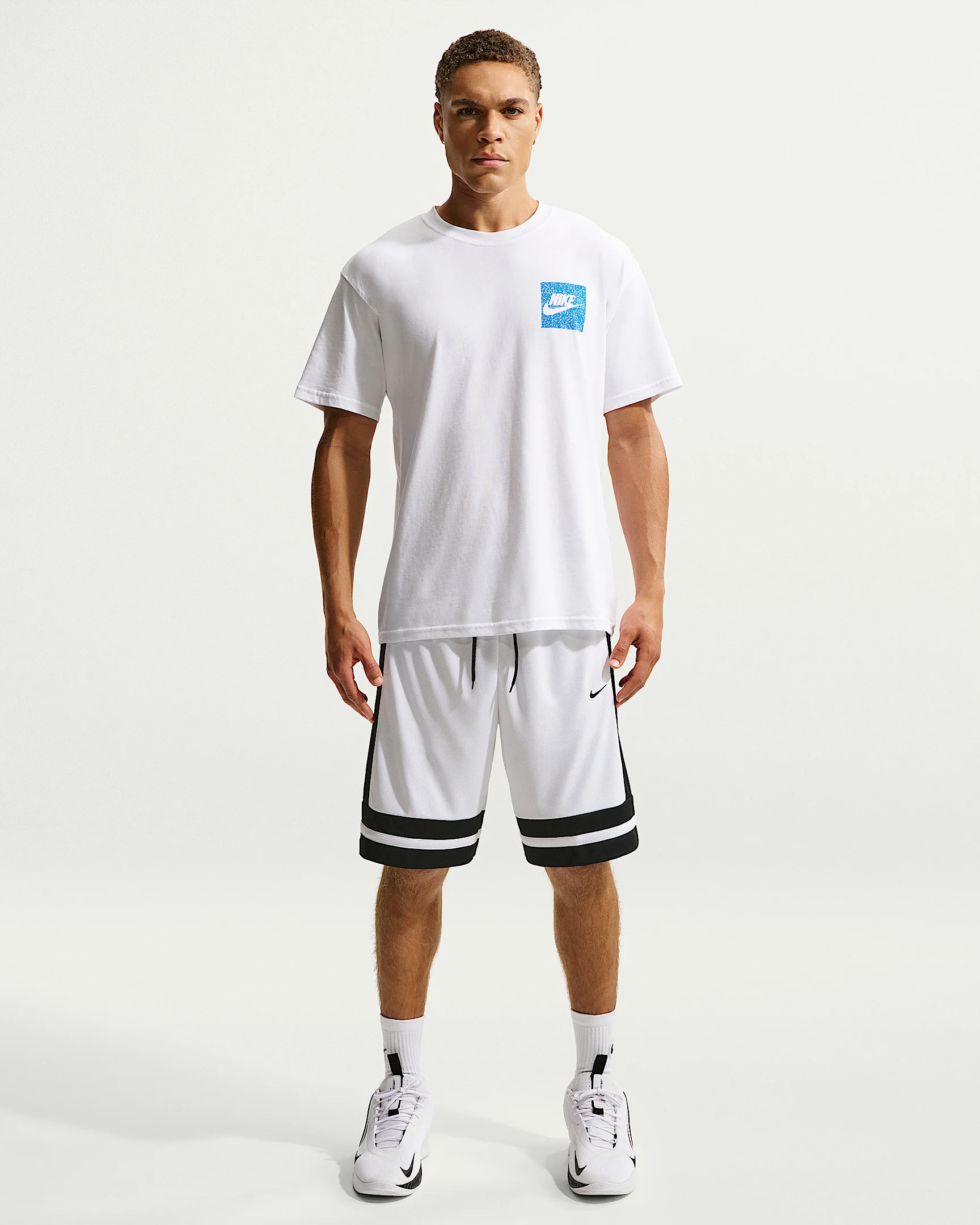 Hit your defender with a dribble combo that makes their head spin these classic 10” shorts. They come with our Nike Dri-Fit tech too, so you can stay dry and comfortable stringing together moves or sprinting the floor for a bucket. Benefits - Nike Dri-FIT technology moves sweat away from your skin for quicker evaporation, helping you stay dry and comfortable. Product Details - Double-knit fabric with a mesh face - Mesh-lined pockets - Zippered back pocket - Elastic waistband with drawcord - Embroidered Swoosh logo - 100% polyester - Machine wash - Imported - Shown: White/Black/White/Black - Style: IO9184-100 SIZE & FIT Model is wearing size M and is 6′3″191cm Standard fit: easy and traditional