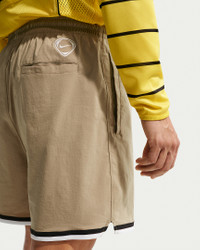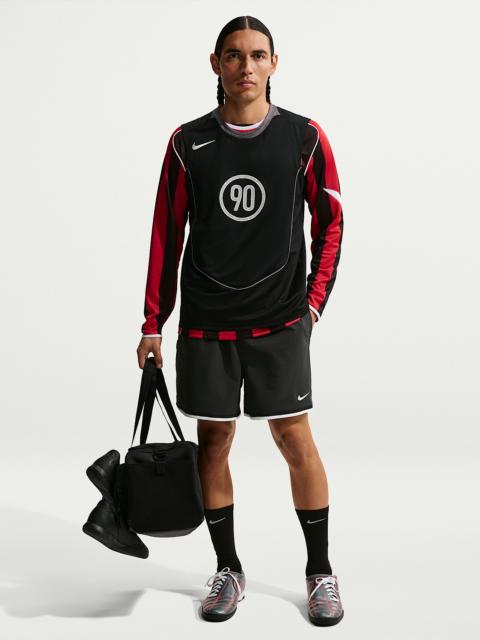 Nike took the soccer world by storm 30 years ago. These sweat-wicking shorts have the same details as those timeless mid-'90s designs, but with the tech to stand up to the modern game. Benefits - Smooth, stretchy nylon moves with you for flexible comfort. - Two-toned Swoosh logo and two-color stripes are inspired by mid-'90s soccer style. Product Details - 5" inseam - Elastic waistband with drawcord - Hand pockets - Back pocket - Woven jock tag - Body: 93% nylon/7% spandex. Mesh: 100% polyester. - Machine wash - Imported - Shown: Filbert/Off Noir/Summit White/Summit White - Style: IF1536-247 SIZE & FIT Model is wearing size M and is 5′11″179cm Loose fit: roomy and relaxed