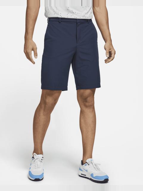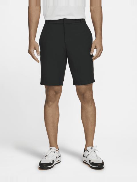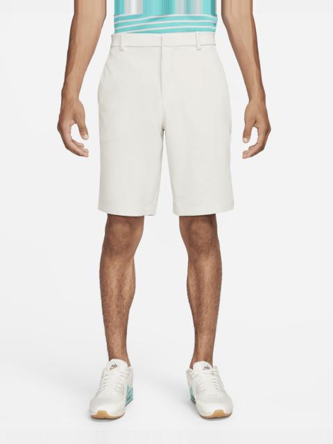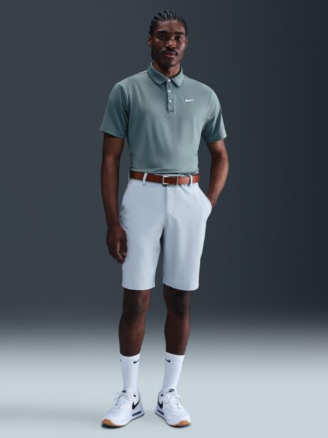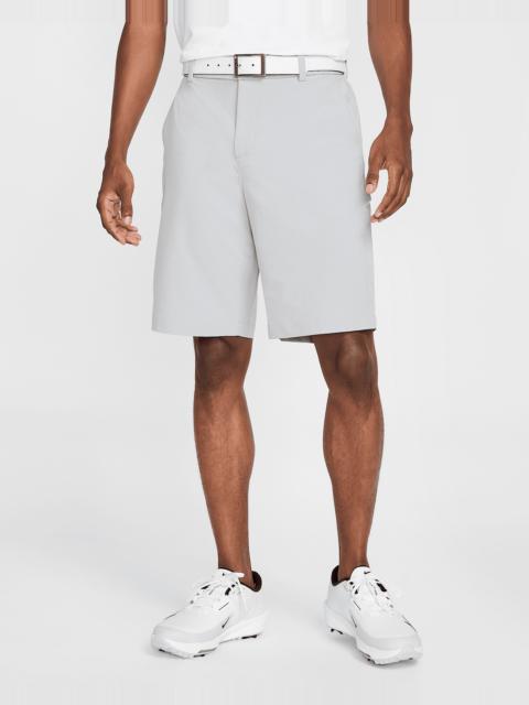 Move comfortably on and off the course in the Nike Dri-FIT Shorts. Stretchy fabric lets you line up your putts without restriction and a tacky waistband helps keep your shirt tucked in while you bend and swing. Benefits - Dri-FIT technology helps keep you dry and comfortable. - Stretchy woven fabric has a subtle texture on the inside to help keep the fabric from clinging to your skin. - Repeating "Nike Golf" graphic on the inner waistband has a slightly tacky texture to help secure a tucked-in shirt. - V-notch in the back of the waistband gives you extra stretch. Product Details - Standard fit for a relaxed, easy feel - Mesh-lined pockets - Snap-button closure - Zippered fly - Body: 89-90% polyester/10-11% spandex. Pocket bags: 100% polyester. - Material percentages may vary. Check label for actual content. - Machine wash - Imported - Shown: White/White - Style: CU9740-100 SIZE & FIT Standard fit: easy and traditional