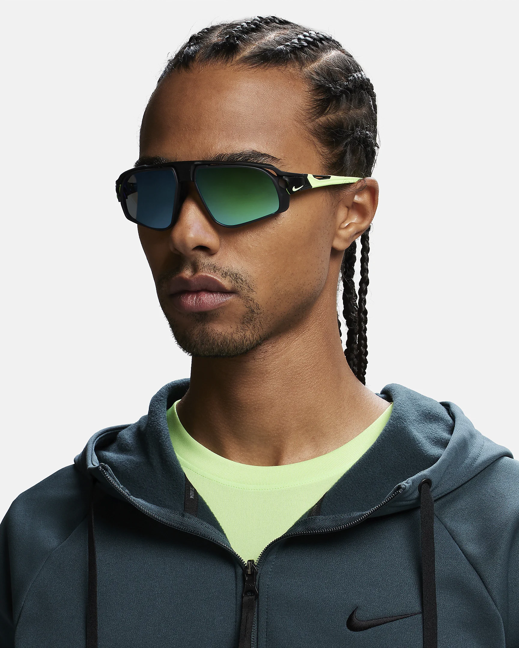 Flip, mount and lock into high performance with the lens that's right for you. Nike Flyfree sunglasses offer interchangeable lens options that latch securely into the frame to help you effortlessly adapt to any environment. The customizable temple tips and nose pads easily bend so you can get a comfortable fit. Plus, we added silicone for traction. And when things heat up, ventilated channels at the temples, hinges and top bar help keep your vision fog-free. Benefits - Nike Max Pro helps reduce light reflection while repelling water and oil for a clearer view of what's ahead. - Easily customize your eyewear based on how and where you are active with the Nike Mount Interchange System. Swap out your lenses to match any light condition, day or night. - 4-base flat lens and slim profile provide everyday coverage. - Nose pad and temple arms are flexible and self-adjust to the shape of your face for a comfortable, personalized fit. Product Details - Injected frame material derives from at least 40% castor bean oil - Prescription-friendly frame - Includes an extra set of interchangeable lenses - 100% UVA/UVB protection - 59-14-135 (Lens Width-Bridge-Temple Length) - Shown: Black - Style: NKFV2391-010