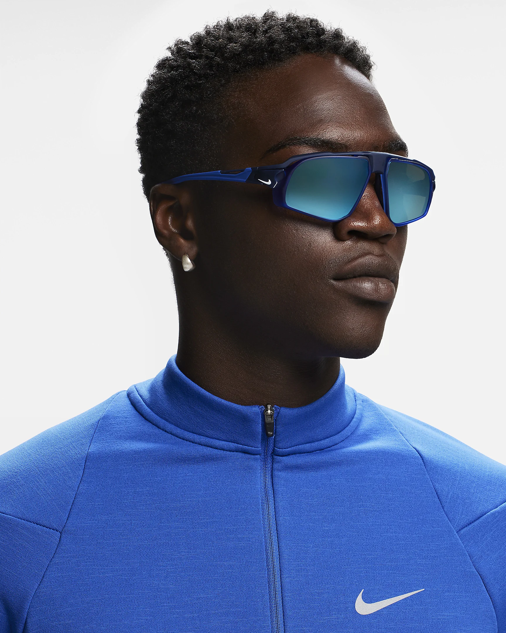 Flip, mount and lock into high performance with the lens that's right for you. Nike Flyfree sunglasses offer interchangeable lens options that latch securely into the frame to help you effortlessly adapt to any environment. The customizable temple tips and nose pads easily bend so you can get a comfortable fit. Plus, we added silicone for traction. And when things heat up, ventilated channels at the temples, hinges and top bar help keep your vision fog-free. Benefits - Nike Max Pro helps reduce light reflection while repelling water and oil for a clearer view of what's ahead. - Easily customize your eyewear based on how and where you are active with the Nike Mount Interchange System. Swap out your lenses to match any light condition, day or night. - 4-base flat lens and slim profile provide everyday coverage. - Nose pad and temple arms are flexible and self-adjust to the shape of your face for a comfortable, personalized fit. Product Details - Injected frame material derives from at least 40% castor bean oil - Prescription-friendly frame - Includes an extra set of interchangeable lenses - 100% UVA/UVB protection - 59-14-135 (Lens Width-Bridge-Temple Length) - Shown: Mystic Navy - Style: NKFV2391-410