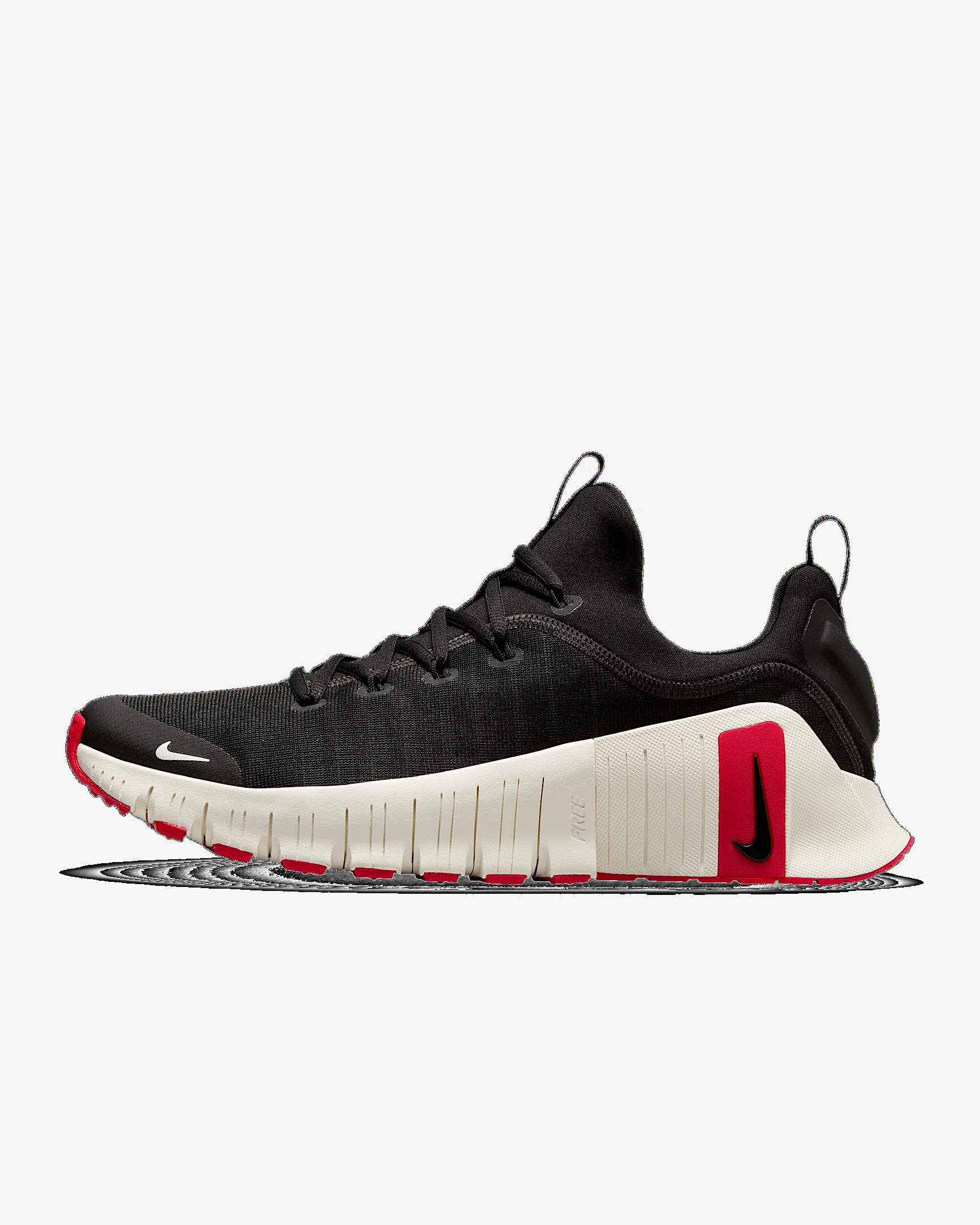 From power lifts to ladders, from grass blades to grainy platforms, from the turf to the track your workout has a certain purpose, a specific focus. The Free Metcon 6 supports every grunt, growl and “got it!” We added even more forefoot flexibility to our most adaptable trainer and reinforced the heel with extra foam. That means more freedom for dynamic movements during plyos and cardio classes, plus the stable base you need for weights. More Benefits - Multi-surface traction pattern is made for any workout surface and activity. - Comfortable inner sleeve increases ankle support and provides a more seamless fit. Product Details - Shown: Black/University Red/Sail - Style: FJ7127-006