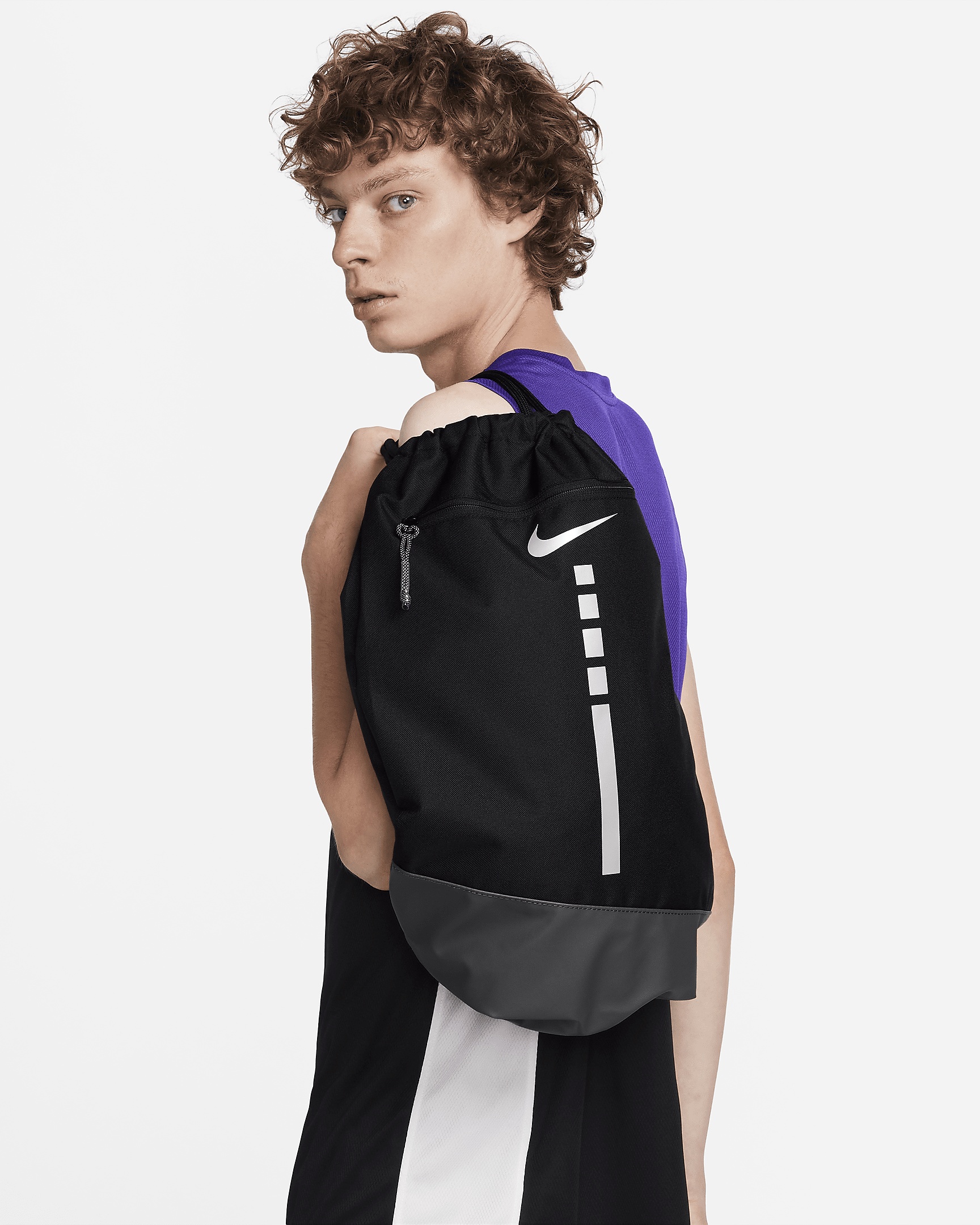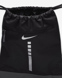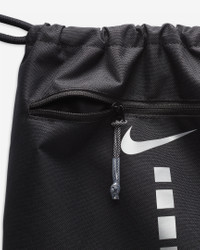 The name says it all. Premium touches, like densely woven material, an extended zipper pull and ventilation holes in the main compartment add to the classic Hoops Elite graphic. Don't forget the front zip pocket and the easy-close drawstring, so you can head to the court and start getting buckets. Benefits - Durable bottom material holds up to bumps and scrapes. - Front pocket is zippered to keep small essentials secure. - Easy-access drawstring closure lets you throw in your gear and get going. Product Details - 15"W x 21"H - 100% polyester - Spot clean - Imported - Shown: Black/Iron Grey/Metallic Silver - Style: DX9790-010