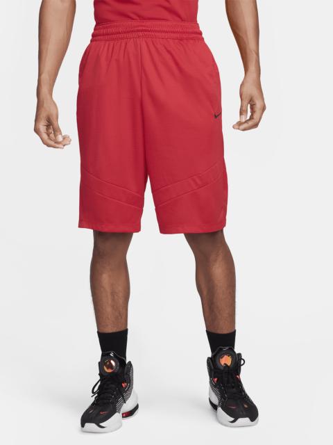 Take it to the hoop and beyond in these basketball essentials. Our sweat-wicking Icon Shorts keep it light and roomy with smooth fabric that's comfortable in all phases of the game. Benefits - Nike Dri-FIT technology moves sweat away from your skin for quicker evaporation, helping you stay dry and comfortable. - Double-knit fabric has a smooth, flat face and mesh backing for cool, comfortable sensation. Product Details - Elastic waistband with an internal drawcord - Side pockets - Hem vents - Embroidered Swoosh graphic - 100% polyester - Machine wash - Imported - Shown: Black/Black/Black - Style: DQ5822-016 SIZE & FIT Model is wearing size M and is 6′2″188cm Loose fit: roomy and relaxed