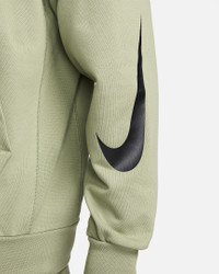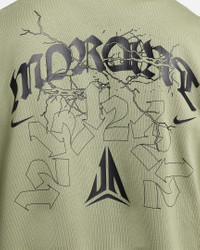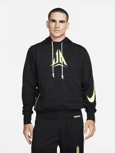 Ja Morant is a self-made superstar. Away from the spotlight, Ja grew up tirelessly working on his game on his backyard court in South Carolina. From anonymous to all-star, Nike celebrates his journey with this signature apparel collection. Nike Dri-FIT technology moves sweat away from your skin for quicker evaporation, helping you stay dry and comfortable. Our soft Standard Issue hoodie offers a relaxed fit complemented by Ja's signature logo. More Benefits - Front pocket helps keep your hands warm. - Zippered side utility pocket helps keep essentials secure. Product Details - Screen-printed Swoosh logo on back - Triple-knotted drawcord at hood - "Standard Issue" woven label - Ribbed cuff, hem and side panel - Body: 61% cotton/39% polyester. Rib: 97% cotton/3% spandex. Hood lining: 100% cotton. - Machine wash - Imported - Shown: Oil Green/Black - Style: FN2987-386 SIZE & FIT Model is wearing size M and is 6′1″185cm Loose fit: roomy and relaxed