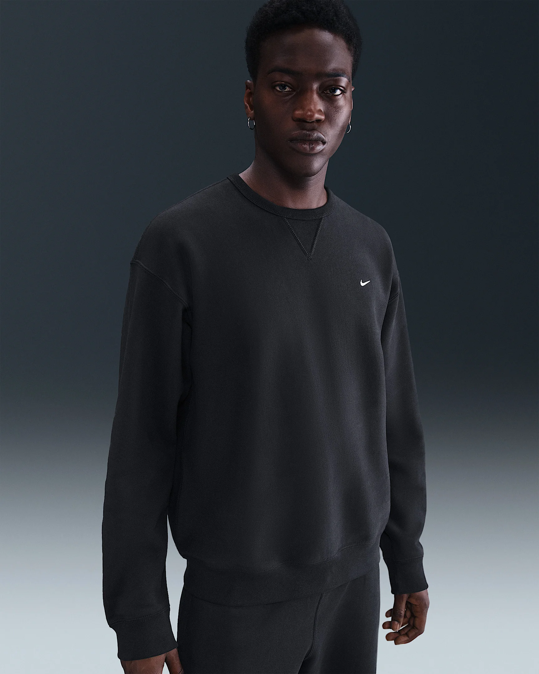 Warm and structured, this sweatshirt is crafted with heavyweight brushed fleece that feels plush on the inside and smooth on the outside, bringing a touch of luxury to your casual, cool-weather layers. The loose fit feels roomy through the body. Product Details - Embroidered Nike Swoosh logo - Ribbed openings - Body: 84-85% cotton/15-16% polyester. Rib: 98% cotton/2% spandex - Material percentages may vary. Check label for actual content. - Machine wash - Imported - Shown: Black/White - Style: HV1086-010 SIZE & FIT Model is wearing size M and is 6′3″189cm Loose fit: roomy and relaxed
