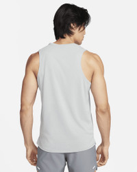 Get those extra miles in with a shirt that won't hold you up. Our sweat-wicking Miler Tank returns with a longer body and ultra-lightweight fabric, so you get more coverage without the weight. It's cool and breathable, with a relaxed fit that won't slow you down. Benefits - Nike Dri-FIT technology moves sweat away from your skin for quicker evaporation, helping you stay dry and comfortable. - Ultra-lightweight knit fabric has a mesh face and flat back for a cool, smooth feel. Product Details - Reflective Swoosh - "Nike Running" back neck tape - 100% polyester - Machine wash - Imported - Not intended for use as Personal Protective Equipment (PPE) - Shown: Grey Fog/Particle Grey/Heather - Style: DV9321-097 SIZE & FIT Model is wearing size M and is 6′2″188cm Big & Tall model is wearing size 3XL and is 6'5"196cm Standard fit: easy and traditional