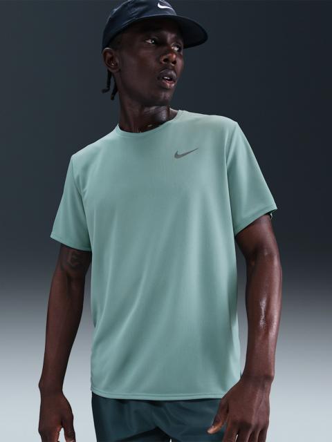 Get those extra miles in with a shirt that holds up to the punishment. Our sweat-wicking Miler Top returns with a longer body and ultra-lightweight fabric, so you get more coverage without the weight. It's cool and breathable, with a relaxed, easy fit that won't slow you down. Plus, UV protection helps add extra coverage from the sun. Benefits - Nike Dri-FIT technology moves sweat away from your skin for quicker evaporation, helping you stay dry and comfortable. - Ultra-lightweight knit fabric has a mesh face and flat back for a cool, smooth sensation. - This product provides UVA and UVB protection from the sun in the areas covered by the garment. Product Details - Reflective Swoosh - "Nike Running" back neck tape - 100% polyester - Machine wash - Imported - Not intended for use as Personal Protective Equipment (PPE) - Shown: White - Style: DV9315-100 SIZE & FIT Model is wearing size M and is 6'3"191cm Big & Tall model is wearing size 2XL and is 6'5"196cm Standard fit: easy and traditional Fits large; we recommend ordering a size down
