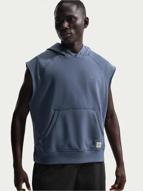 The N.A.C. is where strength meets style—built for performance, designed for gym life. This cutoff hoodie has a roomy fit inspired by throwback pump covers, and sweat-wicking, soft fleece to help keep you dry through every rep. Benefits - Nike Dri-FIT technology moves sweat away from your skin for quicker evaporation, helping you stay dry and comfortable. - Fleece is textured on the exterior for a extra-soft feel. - Roomy fit with raglan sleeve construction gives you a little extra freedom to move in. Product Details - 3-piece hood - Front pouch pocket - Ribbed side panels, cuffs and hem - Embroidered Swoosh logo - Body: 54% polyester/46% cotton. Rib: 96% cotton/4% spandex. - Machine wash - Imported - Shown: Diffused Blue/Diffused Blue - Style: IF2795-491 SIZE & FIT Model is wearing size M and is 6′1″184cm Loose fit: roomy and relaxed