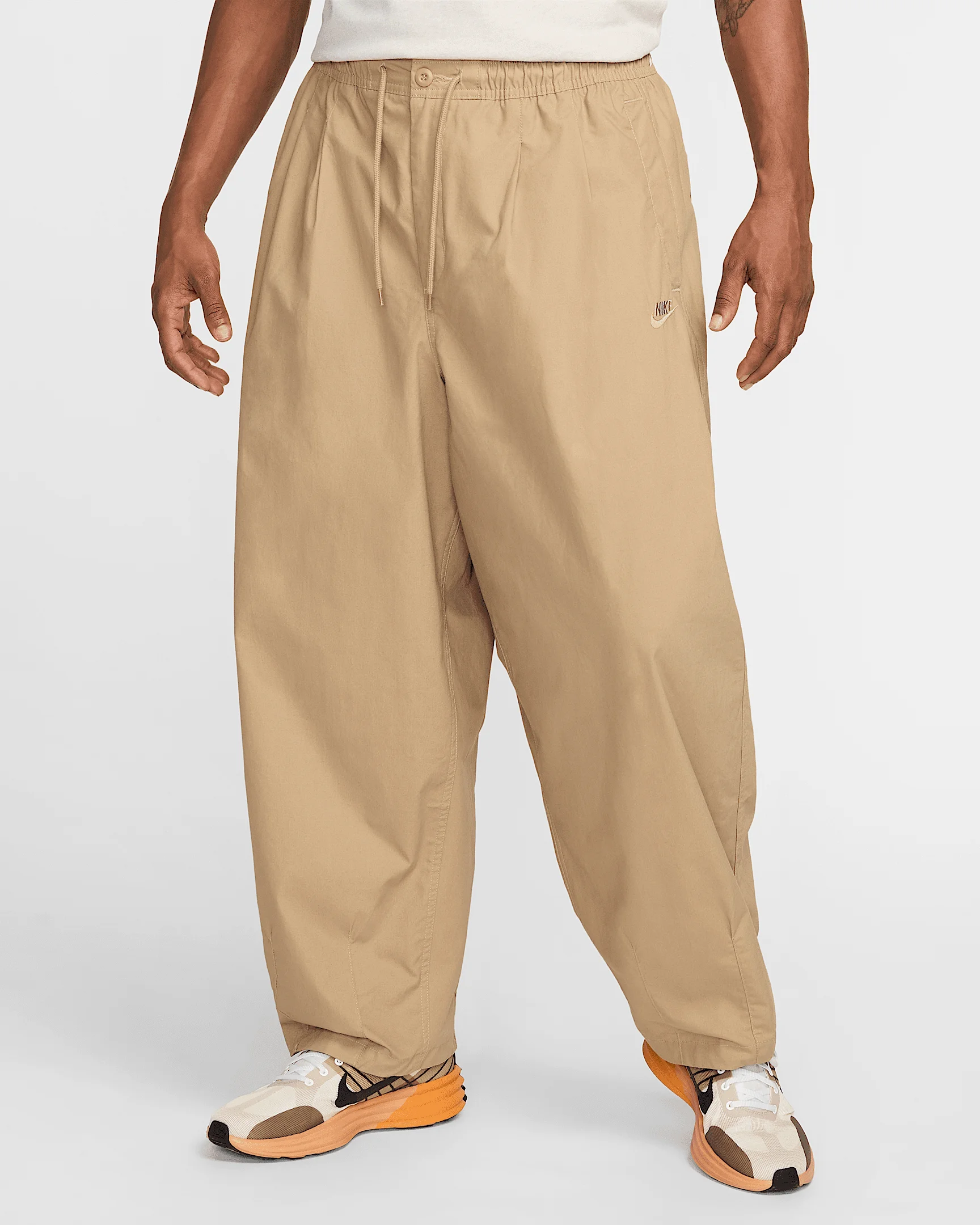 These super-roomy Nike Club pants strike the perfect balance between casual comfort and versatile wearability. Smooth woven fabric offers a cool, lightweight feel. Benefits - Designed to feel roomy through the seat, thighs and legs for easy movement and casual style. - An elastic waistband and external drawcord offer a comfortable fit you can dial in to your preference. - Hand pockets on the side and button pockets on the back offer plenty of space to store your essentials. Product Details - Embroidered Nike Futura logo - 100% cotton - Machine wash - Imported - Shown: Parachute Beige/Parachute Beige - Style: HJ1973-297 SIZE & FIT Model is wearing size M and is 6′2″188cm Oversized fit: exaggerated and spacious