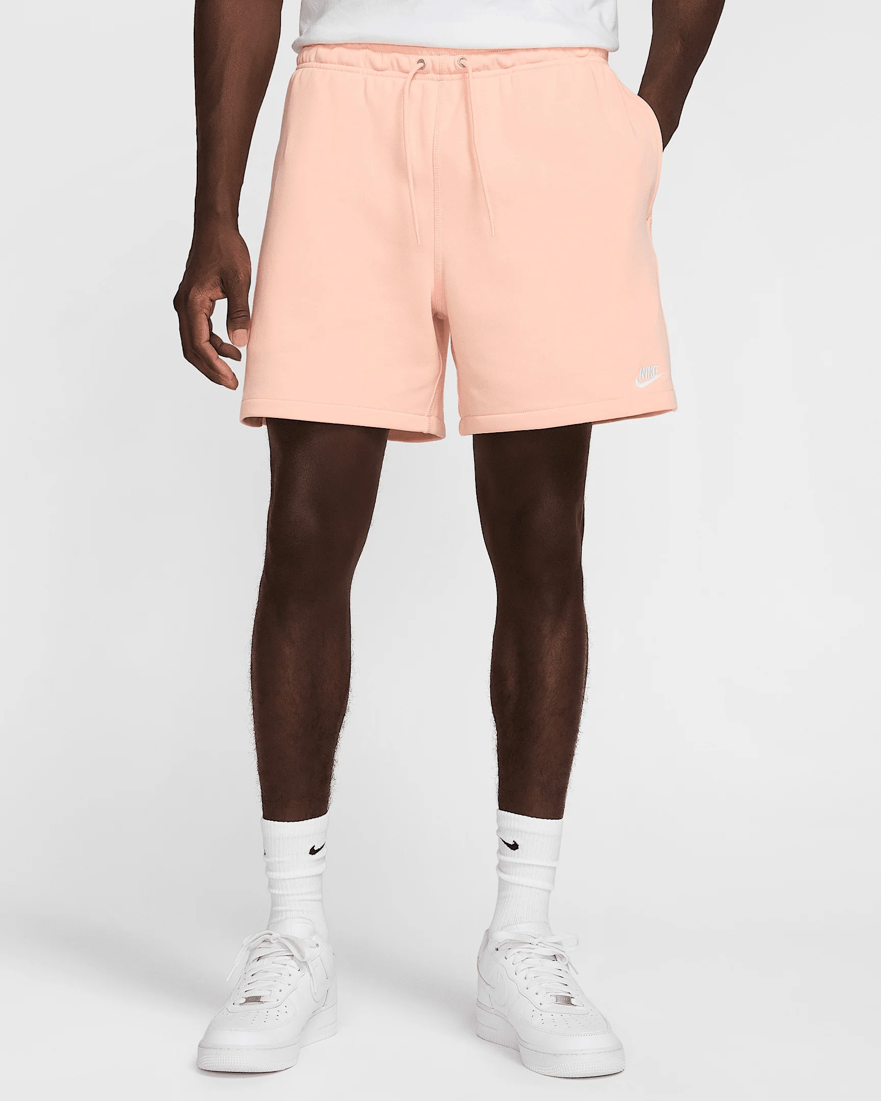 Pull on a pair of our lightweight French terry Flow shorts from Nike Club and get on with your day in style and comfort. Relaxed through the seat and thighs, they're perfect for pairing with a T-shirt for a day in the sun. Benefits - This midweight French terry fabric (with unbrushed loops on the inside) gives structure, breathability and softness—so it's just as ready for the gym as it is for the couch. - Stretchy elastic waistband with adjustable outer drawcord lets you cinch up the right feel. Product Details - Designed to hit above the knee - Hand pockets - Back pocket - Body: 80% cotton/20% polyester. Side pocket knuckle side/Back pocket: 100% cotton. - Machine wash - Imported - Shown: Washed Coral/Washed Coral/White - Style: FN3520-664 SIZE & FIT Model is wearing size M and is 6′3″191cm Big & Tall model is wearing size 3XL and is 6'3"191cm Standard fit: easy and traditional