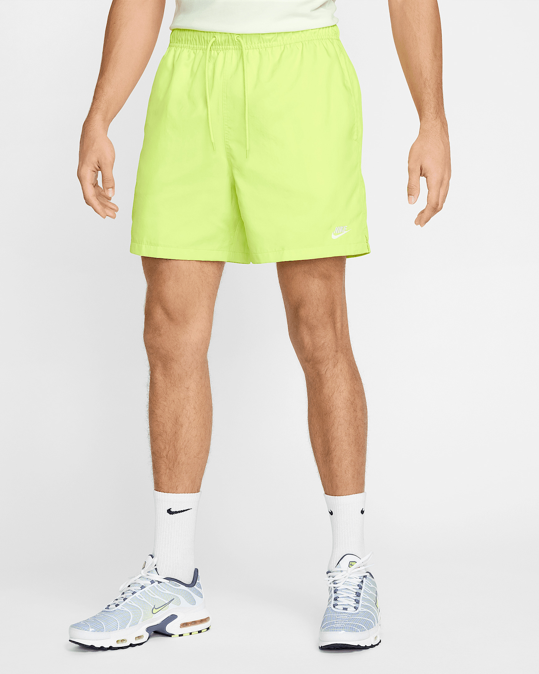 Sporty and versatile, these woven shorts are made for easygoing daily comfort. The fit is designed to hit above-the-knee and feel relaxed through the seat and thighs to keep them from feeling restrictive, especially in warmer weather. Mesh lining helps you stay cool and comfy around town. Pair them up with a tee and your favorite Nike sneakers for a look that gets you out there looking and feeling great. Benefits - Lightweight woven fabric feels smooth and crisp. - Cool mesh lining provides breathable, air-cooled comfort. - Designed to hit above the knee, these relaxed-fitting shorts give you a bit of room through the seat and thighs. - Soft elastic waistband with outer drawcord helps you find a comfy, secure fit. Product Details - 6" inseam - Hand pockets - Back pocket with hook-and-loop closure - Embroidered Nike Futura logo at left thigh - Side vents - 100% polyester - Machine wash - Imported - Shown: Light Lemon Twist/White - Style: FN3307-736 SIZE & FIT Model is wearing size M and is 6′3″191cm Standard fit: easy and traditional Fits large; we recommend ordering a size down