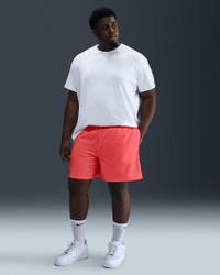 Sporty and versatile, these woven shorts are made for easygoing daily comfort. The fit is designed to hit above-the-knee and feel relaxed through the seat and thighs to keep them from feeling restrictive, especially in warmer weather. Mesh lining helps you stay cool and comfy around town. Pair them up with a tee and your favorite Nike sneakers for a look that gets you out there looking and feeling great. Benefits - Lightweight woven fabric feels smooth and crisp. - Cool mesh lining provides breathable, air-cooled comfort. - Designed to hit above the knee, these relaxed-fitting shorts give you a bit of room through the seat and thighs. - Soft elastic waistband with outer drawcord helps you find a comfy, secure fit. Product Details - 6" inseam - Hand pockets - Back pocket with hook-and-loop closure - Embroidered Nike Futura logo at left thigh - Side vents - 100% polyester - Machine wash - Imported - Shown: Magic Ember/White - Style: FN3307-814 SIZE & FIT Model is wearing size M and is 6′2″188cm Standard fit: easy and traditional Fits large; we recommend ordering a size down