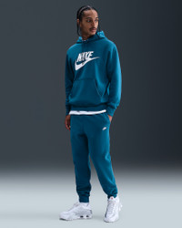 Clean meets casual with these classic joggers. Our midweight brushed fleece feels extra soft on the inside and smooth on the outside. Benefits - Their standard fit feels relaxed through the seat and thighs and tapers towards the ankle. - An elastic waistband and external drawcord deliver a comfortable, custom fit at your waist. - The snap closure back welt pocket and hand pockets fit most phones. Product Details - Embroidered Nike Futura logo - Body: 67-81% cotton/19-33% polyester. Side pocket knuckle side/Back pocket: 100% cotton. - Material percentages may vary. Check label for actual content. - Machine wash - Imported - Shown: Green Abyss/Green Abyss/White - Style: FN3787-301 SIZE & FIT Model is wearing size M and is 6′1″185cm Standard fit: easy and traditional
