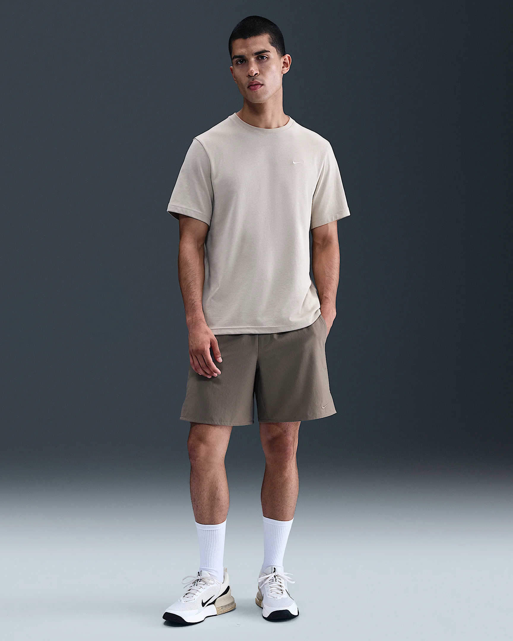 Built for running, training and yoga, our Unlimited collection helps keep you moving throughout the year, thanks to its premium materials and innovative features. These shorts are here for whatever your workout requires, with stretchy fabric that won't get in the way of movement. Plus, a hidden pocket lets you keep your phone close as you bring the heat to the gym or a run. More Benefits - Designed for Running, Yoga and Training - Length: 7" - Liner: Unlined - Fabric: 4-way stretch woven - Storage: Side pockets and hidden back pocket - Waistband: Stay-in-place waistband with convertible interior/exterior drawcord Product Details - This product provides UVA and UVB protection from the sun only in the areas covered by the garment. To protect exposed areas, the use of good quality sunscreen is recommended. - Interior key loop - Faux fly - Embroidered Swoosh - Body: 86% polyester/14% spandex. Mesh: 100% polyester. - Machine wash - Imported - Shown: Cave Stone/Black/Cave Stone - Style: DV9340-289 SIZE & FIT Model is wearing size M and is 6′1″185cm Standard fit: easy and traditional Fits large; we recommend ordering a size down