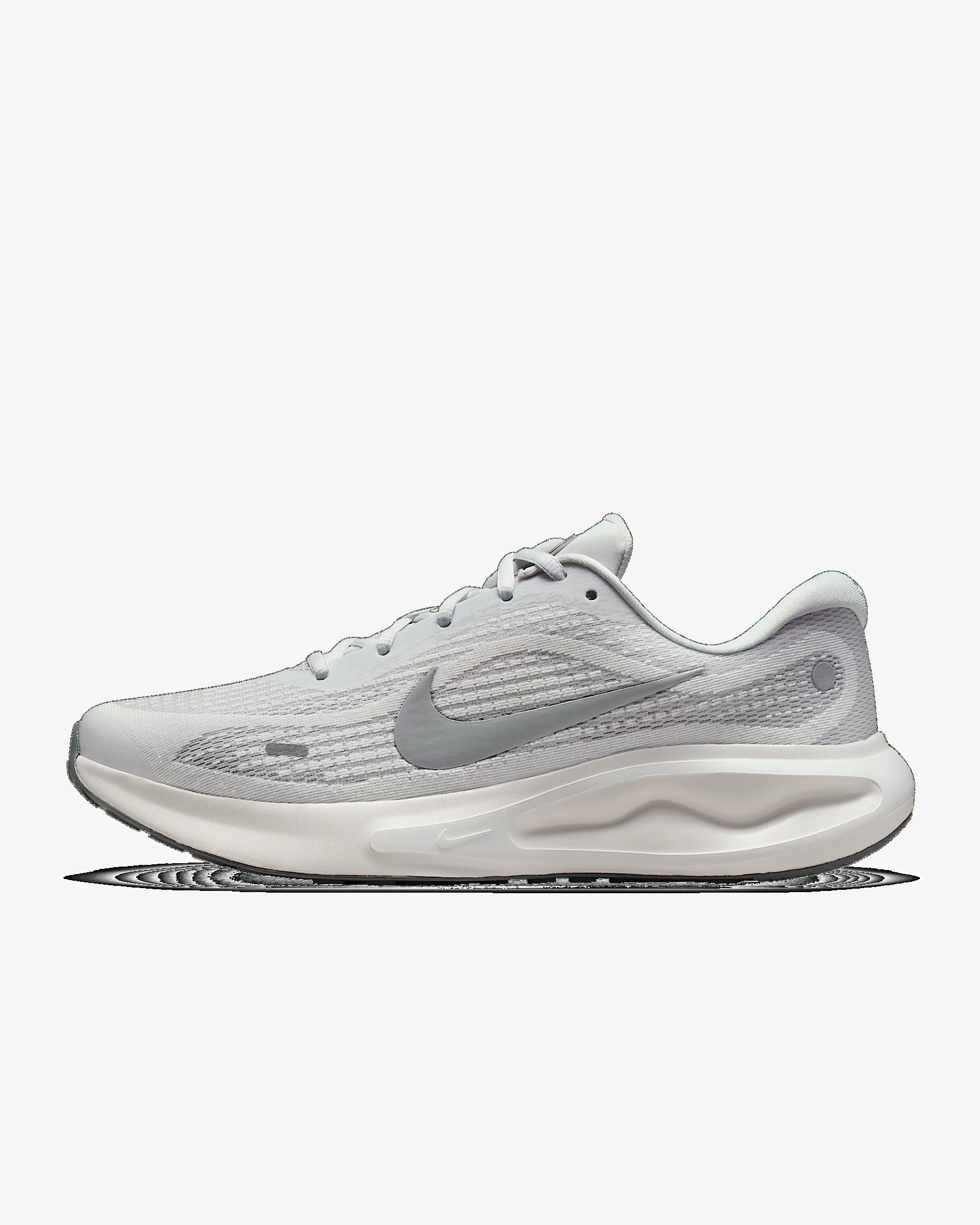 Enjoy every step, route and jaunt in the Nike Journey Run. It’ll have you striding and smiling on punishing pavements, thanks to an extra-high foam stack and supersoft ComfiRide cushioning. It's so comfortable that you'll already be looking forward to lacing 'em up again. Product Details - Reflective details - Not intended for use as Personal Protective Equipment (PPE) - Shown: Summit White/Phantom/Smoke Grey/Light Smoke Grey - Style: FN0228-107