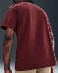 The Nike Sportswear Premium Essentials T-Shirt has a loose fit for a carefree, comfortable look. Its heavyweight organic cotton fabric feels thick and soft. This product is made with at least 75% organic cotton fibers. Benefits - Loose-fitting design features dropped shoulders and room through the chest and shoulders for a relaxed look and feel. - Heavyweight cotton jersey has a stiff drape and dry hand for a crisp, thick feel. - Embroidered logo front and center makes a subtle statement. Product Details - Loose fit for a roomy feel - 100% cotton - Machine wash - Imported - Woven label - Shown: Dark Team Red/Gold - Style: DO7392-620 SIZE & FIT Model is wearing size M and is 6′2″188cm Loose fit: roomy and relaxed Fits large; we recommend ordering a size down