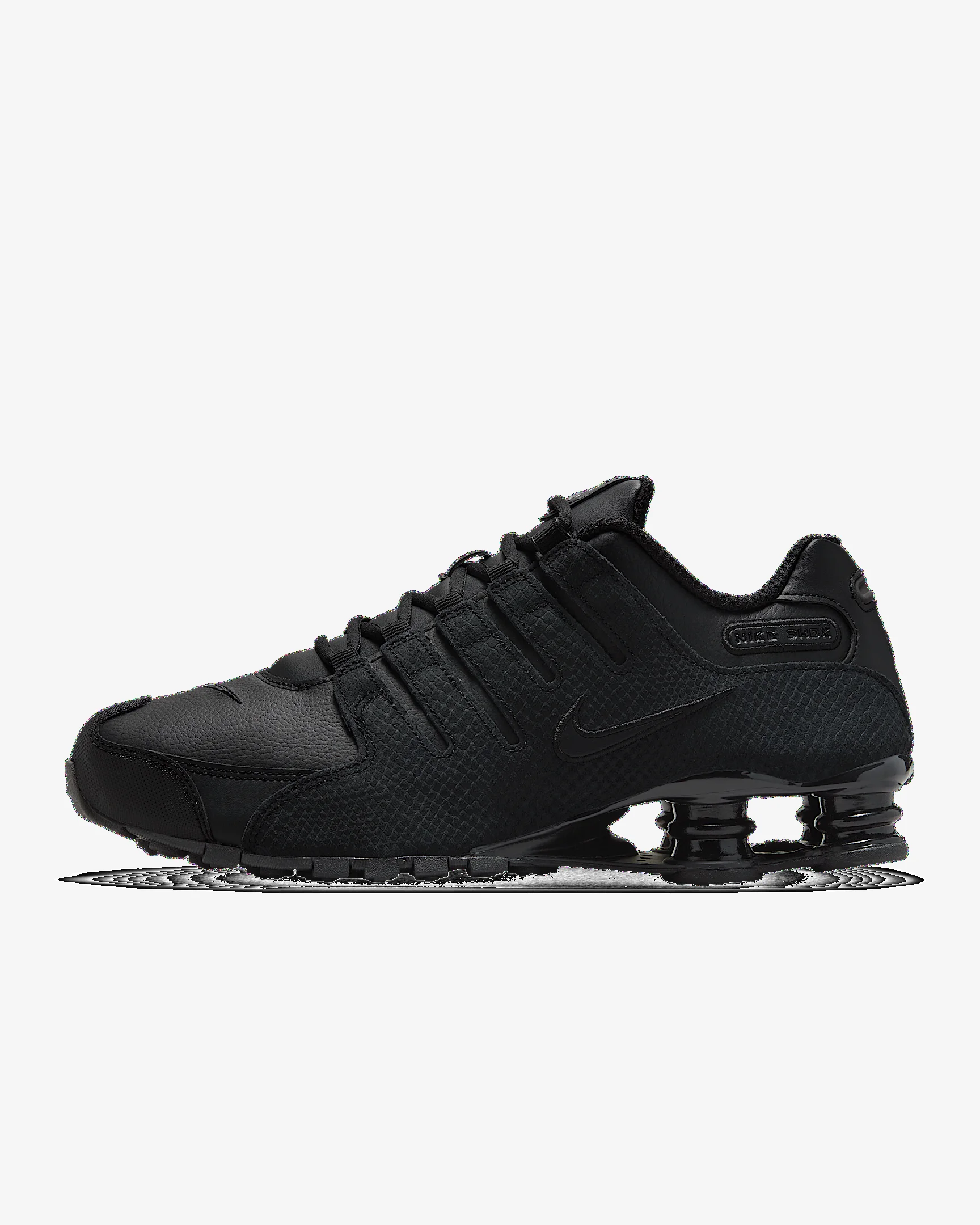 A recrafted version of the early 2000's icon, this Nike Shox NZ replicates the original with a synthetic and mesh upper. Nike Shox cushioning underfoot helps provide optimal comfort and a performance-inspired look Benefits - Synthetic upper with mesh details help keep it airy and lightweight. - Originally designed to support runners, Nike Shox columns help provide responsive cushioning. - The low-cut, padded collar looks sleek and feels comfortable. - Solid rubber, tacky Waffle outsole adds traction and durability. Product Details - Soft foam midsole - Embroidered Swoosh outline - Shown: Black/Black/Black - Style: 378341-001