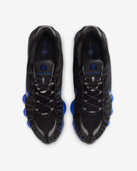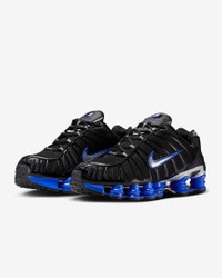 The Nike Shox TL brings back the 2003 icon, this time with fresh colors and a heavy-duty, breathable nylon mesh in the upper. You still get the plastic overlays up top, just like the original and, of course, the legendary full-length cushioning columns that are sure to turn heads once again. Benefits - Nylon mesh in the upper with plastic overlays is a near-exact replica of the 2003 Nike Shox TL. - Nike Shox cushioning provides distinctive impact absorption. - Molded overlays on the midfoot provide support and a snug fit. - TPU plate in the heel, between the midsole and the Nike Shox cushioning, helps provide lateral stability and support. Product Details - Rubber outsole - Shown: Black/Racer Blue/Metallic Silver - Style: CN0151-004