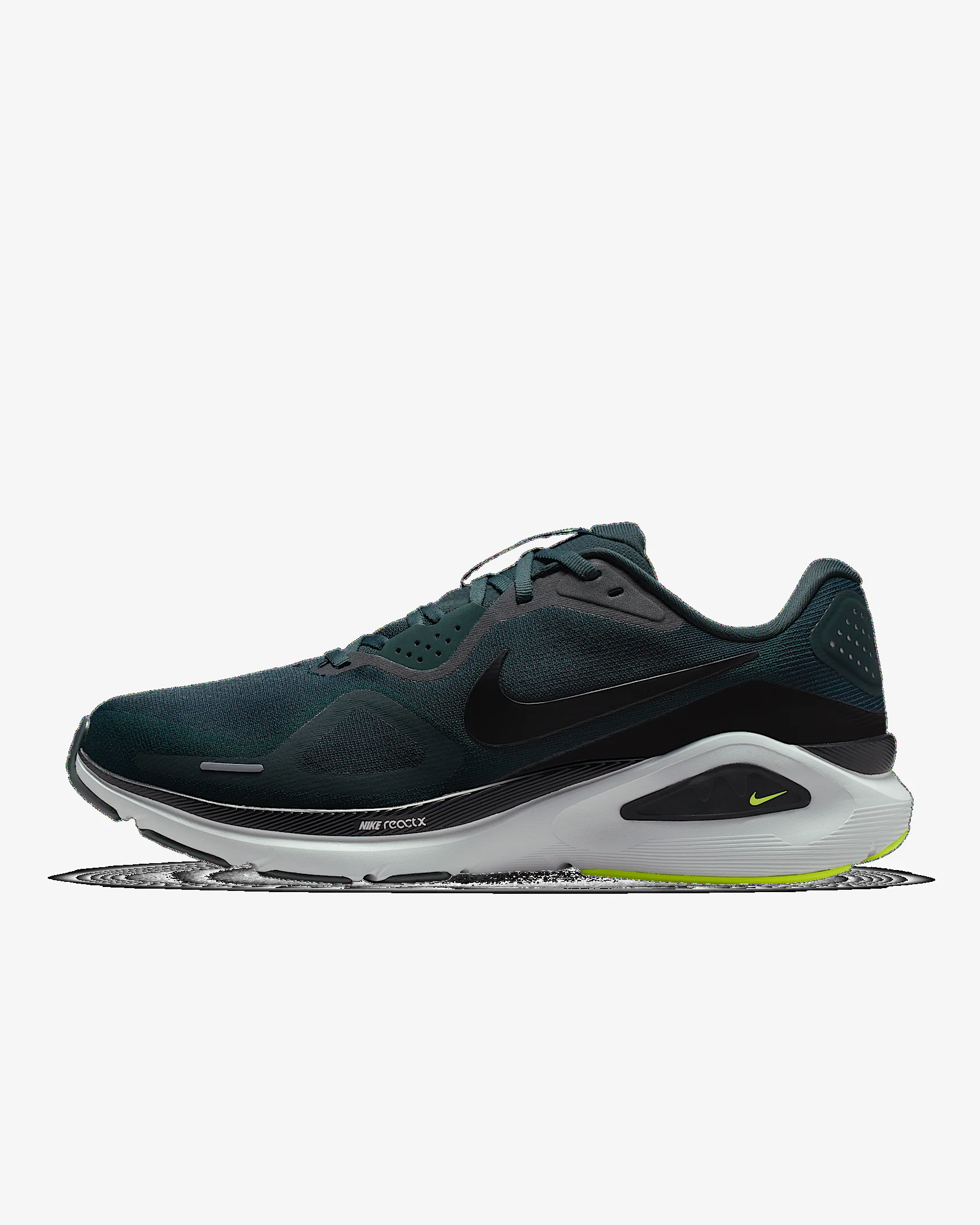 Supportive cushioning in the Structure 26 provides steadiness for everyday runs. A full-length ReactX midsole delivers a cushioned, yet stable transition from heel to toe off. Plus, a tried-and-true midfoot support system wraps around your arch and heel to provide a firm platform. More Benefits - ReactX foam underfoot and higher stack height for stability and support - Lighter, more flexible rubber in forefoot of outsole for cushioning - High-abrasion rubber in heel for increased durability Product Details - Weight: Approx. 321g/11.3oz (Men's US 10) - Heel-to-toe drop: 10mm - Reflective details - Not intended for use as Personal Protective Equipment (PPE) - Shown: Seaweed/Volt/Pure Platinum/Black - Style: HJ1102-300 SIZE & FIT Fits small; we recommend ordering a half size up