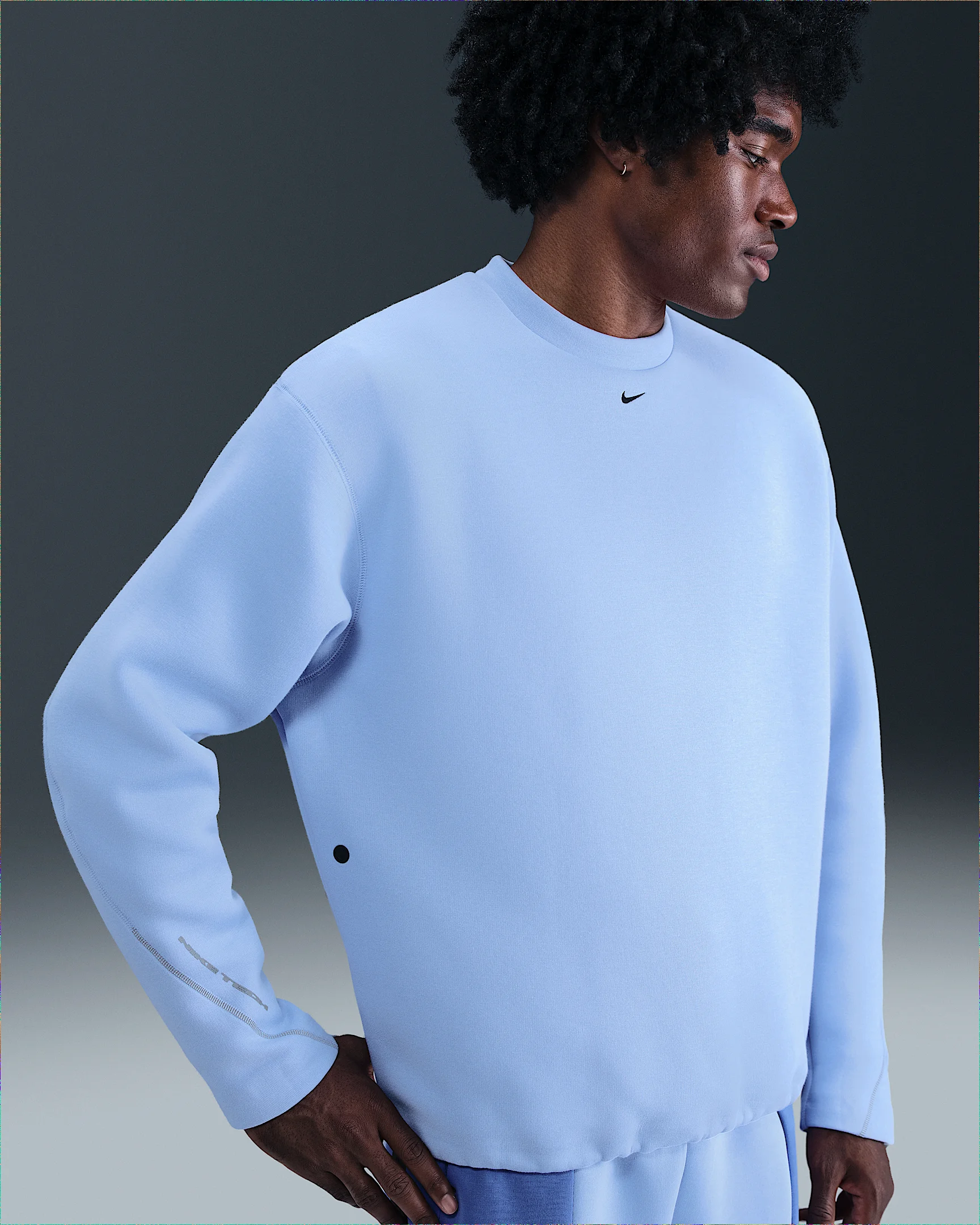 We took our iconic smooth-on-both-sides fleece and delivered a heavyweight version that's our thickest and warmest yet. It's paired with a loose fit and technical details, like vent grommets at the sides. Benefits - This crew is made with the thickest and warmest version yet of our premium, smooth-on-both-sides fleece. - An elastic drawcord and cord lock at the hem makes dialing in your fit a breeze. - Vent grommets help keep heat and humidity from getting out of control. - The loose fit feels roomy through the body for easy movement and layering. Product Details - Embroidered Nike Swoosh logo - Reflective stitches at sleeves - Locker loop - Not intended for use as Personal Protective Equipment (PPE) - 62% polyester/38% cotton - Machine wash - Imported - Shown: Aluminum/Black - Style: HV6537-468 SIZE & FIT Model is wearing size M and is 6′2″188cm Loose fit: roomy and relaxed