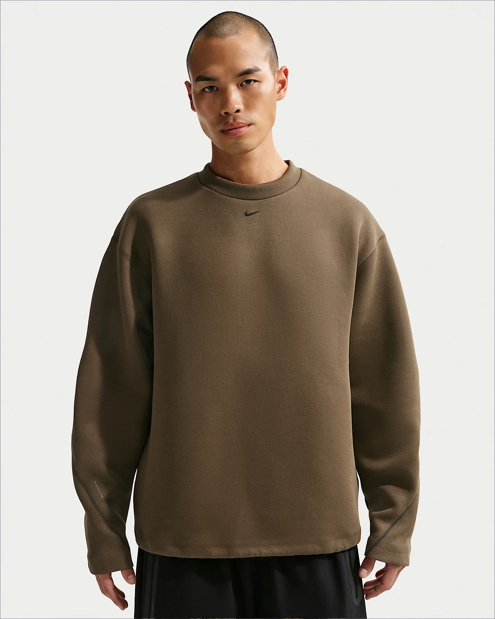 We took our iconic smooth-on-both-sides fleece and delivered a heavyweight version that's our thickest and warmest yet. It's paired with a loose fit and technical details, like vent grommets at the sides. Benefits - This crew is made with the thickest and warmest version yet of our premium, smooth-on-both-sides fleece. - An elastic drawcord and cord lock at the hem makes dialing in your fit a breeze. - Vent grommets help keep heat and humidity from getting out of control. - The loose fit feels roomy through the body for easy movement and layering. Product Details - Embroidered Nike Swoosh logo - Reflective stitches at sleeves - Locker loop - Not intended for use as Personal Protective Equipment (PPE) - 62% polyester/38% cotton - Machine wash - Imported - Shown: Dark Hazel/Black - Style: HV6537-212 SIZE & FIT Model is wearing size M and is 5'11"180cm Loose fit: roomy and relaxed