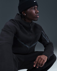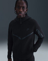 The iconic Tech Fleece Windrunner Hoodie is back. This version has the utility sleeve pocket, hem and cuff binding, and taped chevron that made the original stand out in the streets. Benefits - Our premium, smooth-on-both-sides fleece feels warmer and softer than ever, while keeping the same lightweight build you love. - The standard fit is designed to feel relaxed through the body for easy layering. Product Details - Hand pockets - Zippered sleeve pocket - Body: 53% cotton/47% polyester. Pocket Bag Knuckle Side: 100% cotton. Hood Lining: 53% cotton/47% polyester. - Machine wash - Imported - Shown: Black/Black - Style: HV0949-010 SIZE & FIT Model is wearing size M and is 6′3″191cm Big & Tall model is wearing size 2XL and is 6'3"189cm Standard fit: easy and traditional