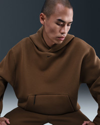 We took our iconic smooth-on-both-sides fleece and delivered a heavyweight version that's our thickest and warmest yet. It's paired with an oversized fit and technical details, like vent grommets at the sides. Benefits - This hoodie is made with the thickest and warmest version yet of our premium, smooth-on-both-sides fleece. - Oversized fit is slightly longer and extra roomy through the body and sleeves. - Vent grommets help keep heat and humidity from getting out of control. - Pouch pocket has side entry and separate zipper compartment at top. Product Details - Embroidered Nike Swoosh logo - Reflective stitches at sleeves - Not intended for use as Personal Protective Equipment (PPE) - 62% polyester/38% cotton - Machine wash - Imported - Shown: Mosswood Brown/Black - Style: HV6535-235 SIZE & FIT Model is wearing size M and is 5′11″180cm Oversized fit: exaggerated and spacious