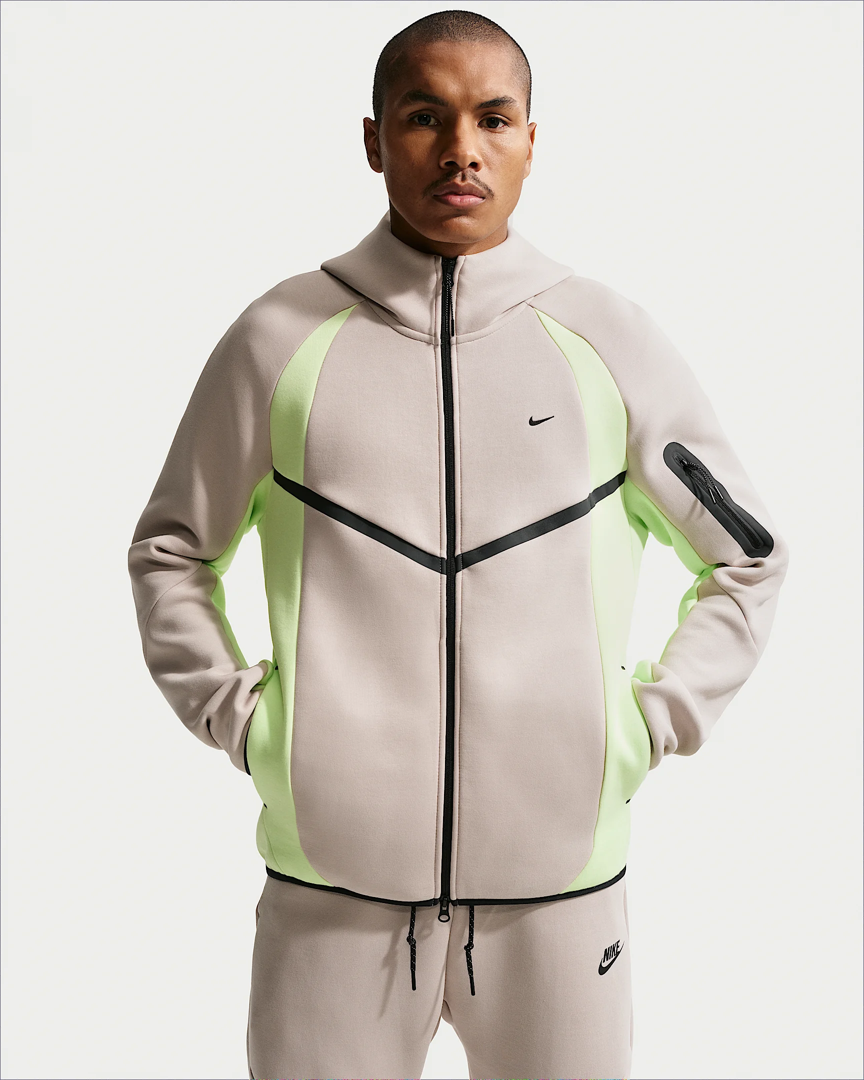 Iconic Nike Windrunner style gets an injection of premium comfort with our smooth-on-both-sides fleece. It's paired with a relaxed fit and technical details, like a signature tape-reinforced Tech pocket on the sleeve and binding at the hem and cuffs. Product Details - Embroidered logo - 2-way zipper - Hand pockets - Body: 53% cotton/47% polyester. Pocket bags: 100% cotton. Hood lining: 53% cotton/47% polyester. - Machine wash - Imported - Shown: Cream II/Light Liquid Lime/Black - Style: IF1325-236 SIZE & FIT Model is wearing size M and is 5′10″178cm Standard fit: easy and traditional