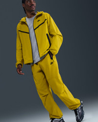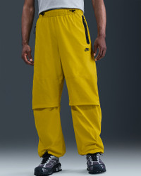 Crafted with stretchy woven material, these Nike Tech pants offer you ease of movement and adjustability. The wide-leg cut is paired with bungee locks at the ankles that let you switch up the fit. Benefits - Lightweight fabric moves sweat away from your skin for quick evaporation, helping you stay dry and comfortable. - Oversized fit offers plenty of space through the thighs and legs. - Articulated knees are made with movement in mind, and add a distinct Nike Tech aesthetic. - Stretchy elastic waistband with bungee drawcord provides a custom fit. Product Details - Nike Futura logo - Extralong taped Tech pocket - Hand pocket on the left - Body: 94% nylon/6% spandex. Pocket Bags: 100% polyester. - Machine wash - Imported - Shown: Bright Citron/Bright Citron/Black - Style: HM7158-726 SIZE & FIT Model is wearing size M and is 6′2″188cm Oversized fit: exaggerated and spacious 78 length: hits at ankle Fits large; we recommend ordering a size down
