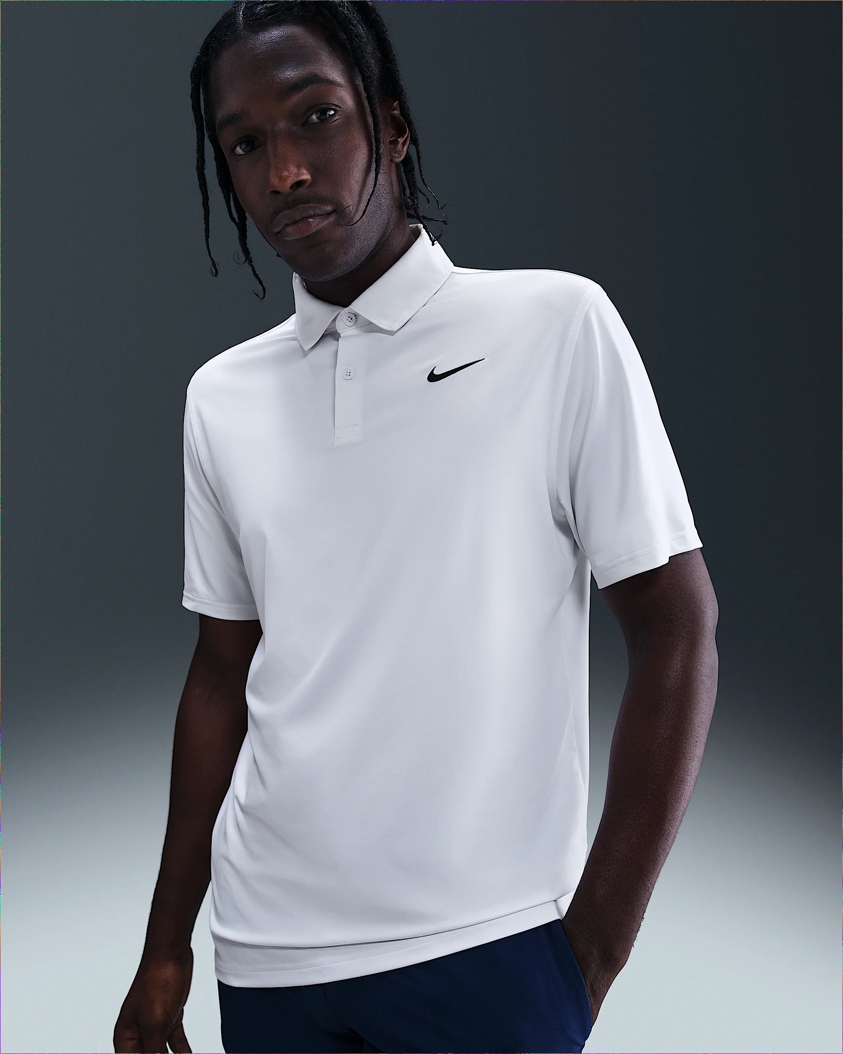 Just like when your swing's working, a good shirt is nothing to mess with. Lightweight and breathable, this sweat-wicking polo helps you stay comfortable through the highs and lows of your rounds. Benefits - Nike Dri-FIT technology moves sweat away from your skin for quicker evaporation, helping you stay dry and comfortable. - Some stretch in the fabric allows you to rotate and swing through the ball with ease. Product Details - 90% polyester/10% spandex - 2-button placket - Embroidered Swoosh logo - This product provides UVA and UVB protection from the sun only in the areas covered by the garment. To protect exposed areas, the use of good quality sunscreen is recommended. - Machine wash - Imported - Shown: White/Black - Style: IB0273-100 SIZE & FIT Model is wearing size M and is 6′2″188cm Standard fit: easy and traditional