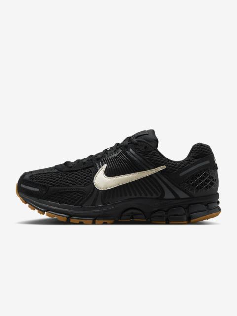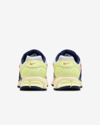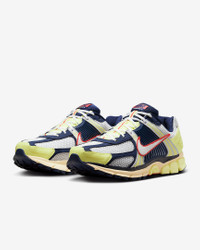 Carve a new lane for yourself in the Zoom Vomero 5—your go-to for complexity, depth and easy styling. The richly layered design includes textiles, synthetic leather and plastic accents that come together to make one of the coolest sneakers of the season. Benefits - Synthetic leather on upper adds durability. - Mesh panels and ventilation ports on heel keep it light and breathable. - Snappy and responsive, Air Zoom cushioning helps provide a quick-off-the-ground sensation. - Plastic caging on side adds support. - Rubber outsole gives you durable traction. Product Details - Reflective details - Not intended for use as Personal Protective Equipment (PPE) - Shown: Barely Volt/Midnight Navy/Pure Platinum/White - Style: IB4004-701