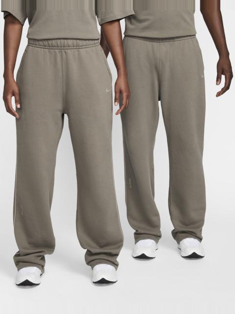 These premium open-hem sweatpants feature a new exclusive fleece that's soft and structured. Pants include reflective piping and zippered pockets. Benefits - Designed to feel relaxed through the seat and thighs for a casual fit you can dress up or down. - An elastic waistband and internal drawcord provide a comfortable, custom fit. Product Details - NOCTA-branded zippers at pockets - Body: 82% cotton/18% polyester. Pocket bags: 100% cotton. - Machine wash - Imported - Shown: Dark Grey Heather/Matte Silver/Black - Style: FZ4675-063 SIZE & FIT Female model is wearing size S and is 5'9"175cm Male model is wearing size M and is 6'3"191cm Standard fit: easy and traditional