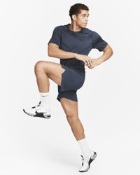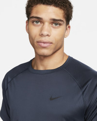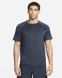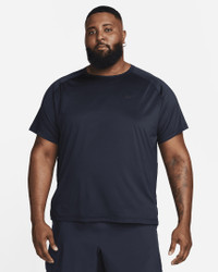 The sweat-wicking Ready Top keeps you fresh for all your fitness activities. It's cut with a relaxed fit with quick-drying, breathable fabric to help you stay cool when your workout heats up. Plus, it has angled sleeves for better movement, whether you're lifting at the gym or stretching outside. Benefits - Nike Dri-FIT technology moves sweat away from your skin for quicker evaporation, helping you stay dry and comfortable. - Breathable mesh fabric helps keep you cool. - Raglan sleeves are angled so you get the most out of your arm movement. - Flat stitching feels smooth against the skin. Product Details - 92% polyester/8% spandex - Machine wash - Imported - Shown: Obsidian/Black - Style: DV9815-451 SIZE & FIT Model is wearing size M and is 6'2"188cm Big & Tall model is wearing size 2XL and is 6'5"196cm Standard fit: easy and traditional Fits large; we recommend ordering a size down
