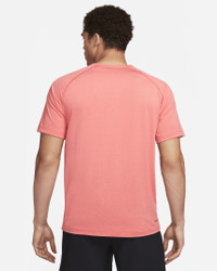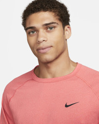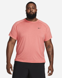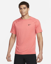 The sweat-wicking Ready Top keeps you fresh for all your fitness activities. It's cut with a relaxed fit with quick-drying, breathable fabric to help you stay cool when your workout heats up. Plus, it has angled sleeves for better movement, whether you're lifting at the gym or stretching outside. Benefits - Nike Dri-FIT technology moves sweat away from your skin for quicker evaporation, helping you stay dry and comfortable. - Breathable mesh fabric helps keep you cool. - Raglan sleeves are angled so you get the most out of your arm movement. - Flat stitching feels smooth against the skin. Product Details - 92% polyester/8% spandex - Machine wash - Imported - Shown: University Red/Heather/Black - Style: DV9815-657 SIZE & FIT Model is wearing size M and is 6'2"188cm Big & Tall model is wearing size 2XL and is 6'5"196cm Standard fit: easy and traditional Fits large; we recommend ordering a size down