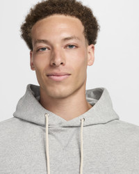 Nike's Standard Issue collection is where classic style meets modern performance. With an easygoing fit and soft midweight knit, this hoodie is all about versatility. Moisture-wicking technology helps you stay dry. More Benefits - Zippered utility pocket stores small items. - Ribbed panels on the side and underarm provide extra stretch. - Front pocket helps keep your hands warm. Product Details - Hood with drawcord - Ribbed cuffs and hem - "Standard Issue" woven label - Body/Hood lining: 54% polyester/46% cotton. Rib: 96% cotton/4% spandex. - Machine wash - Imported - Shown: Dark Grey Heather/Pale Ivory - Style: FZ0218-063 SIZE & FIT Model is wearing size M and is 5′11″180cm Big & Tall model is wearing size 3XL and is 6'1"185cm Standard fit: easy and traditional