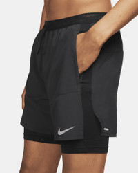 Designed for running, the Stride Shorts have a lightweight feel—made with at least 75% recycled polyester fibers—and made for unrestricted movement. They're smooth to the touch, with extra breathability at the upper back. Plus, they feature a full-length internal short liner for extra coverage and support. Need to take a phone along? We've got a pocket at the back geared just for your device. More Benefits - Designed for Running - Length: 5" - Liner: Internal short - Fabric: Lightweight and breathable woven - Storage: Side pockets and zippered back pocket - Waistband: Narrow with drawcord Product Details - Standard fit for a relaxed, easy feel - Short inseam: 5” - Internal short liner: 7” - Body: 100% polyester. Back panels: 94% polyester/6% spandex. Tight/tight center front lining: 89% polyester/11% spandex. - Machine wash - Imported - Not intended for use as Personal Protective Equipment (PPE) - Shown: Black/Black/Black - Style: DM4757-010 SIZE & FIT Model is wearing size M and is 6'3"191cm Big & Tall model is wearing size 2XL and is 6'5"196cm Standard fit: easy and traditional