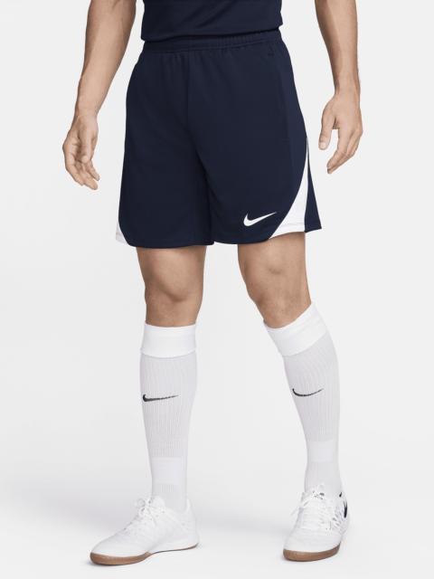 Be your best with the Nike Strike collection—apparel for both elite soccer players and rising stars that helps keep the sweat away on the field. Breathable and sweat wicking, these shorts also have a gusset panel to keep your movement natural and unrestricted. Benefits - Nike Dri-FIT technology moves sweat away from your skin for quicker evaporation, helping you stay dry and comfortable. - Slightly textured stretch-knit fabric is lightweight and breathable. - Elastic waistband with drawcord provides a fit that feels just right. - Gusset design helps maintain a natural range of motion. Product Details - Hand pockets - Ribbed panels - 100% polyester - Machine wash - Imported - Shown: Black/Black/Anthracite/White - Style: FN2401-010 SIZE & FIT Model is wearing size M and is 6′2″188cm Standard fit: easy and traditional