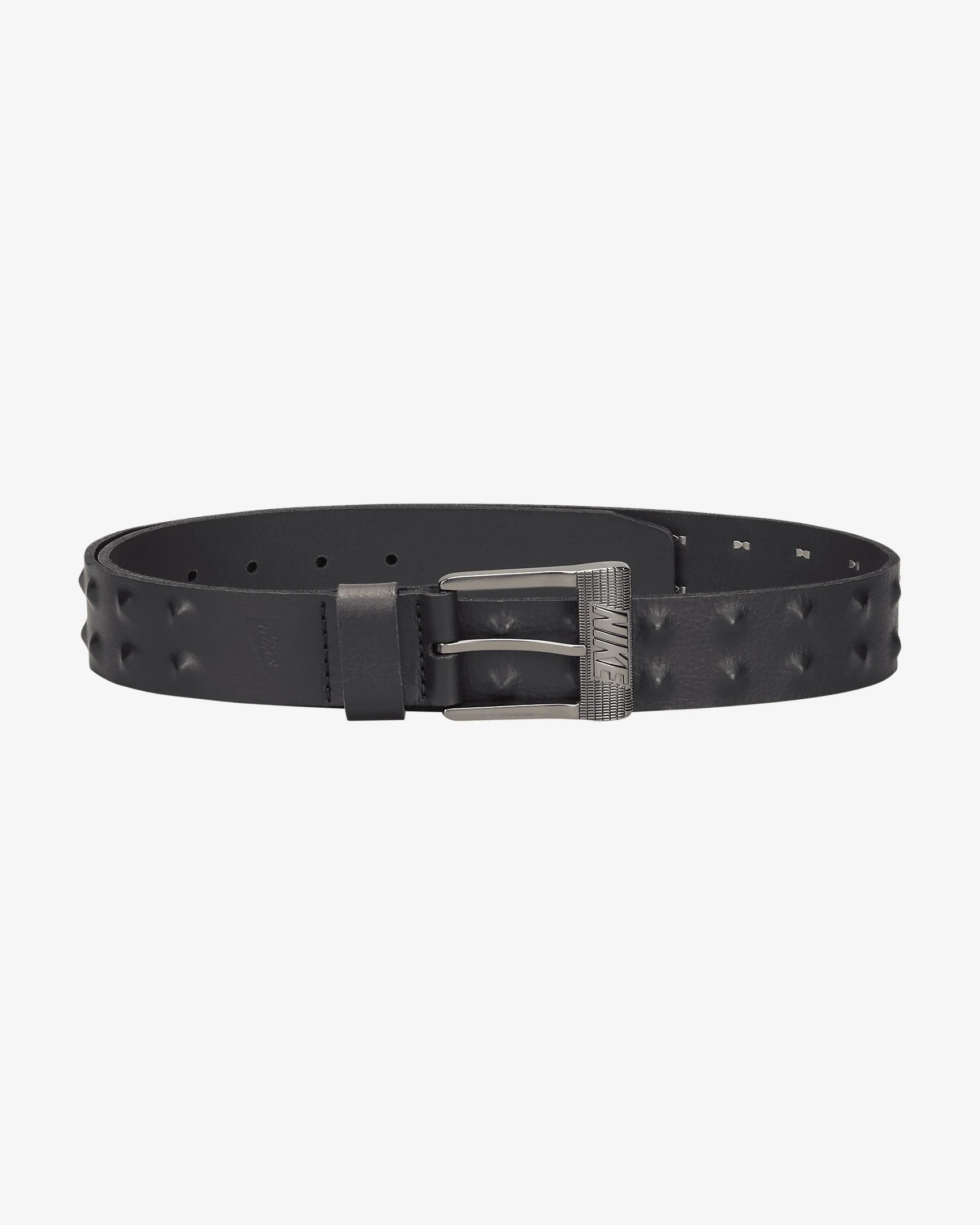Studded belts are back. This subtle version has the studs sandwiched between to layers of leather to give you a textured look. Product Details - 38-mm strap - Matte gunmetal buckle - Raised "NIKE" logo - 100% leather - Spot clean - Imported - Shown: Black/Chianti/White - Style: 180030-010