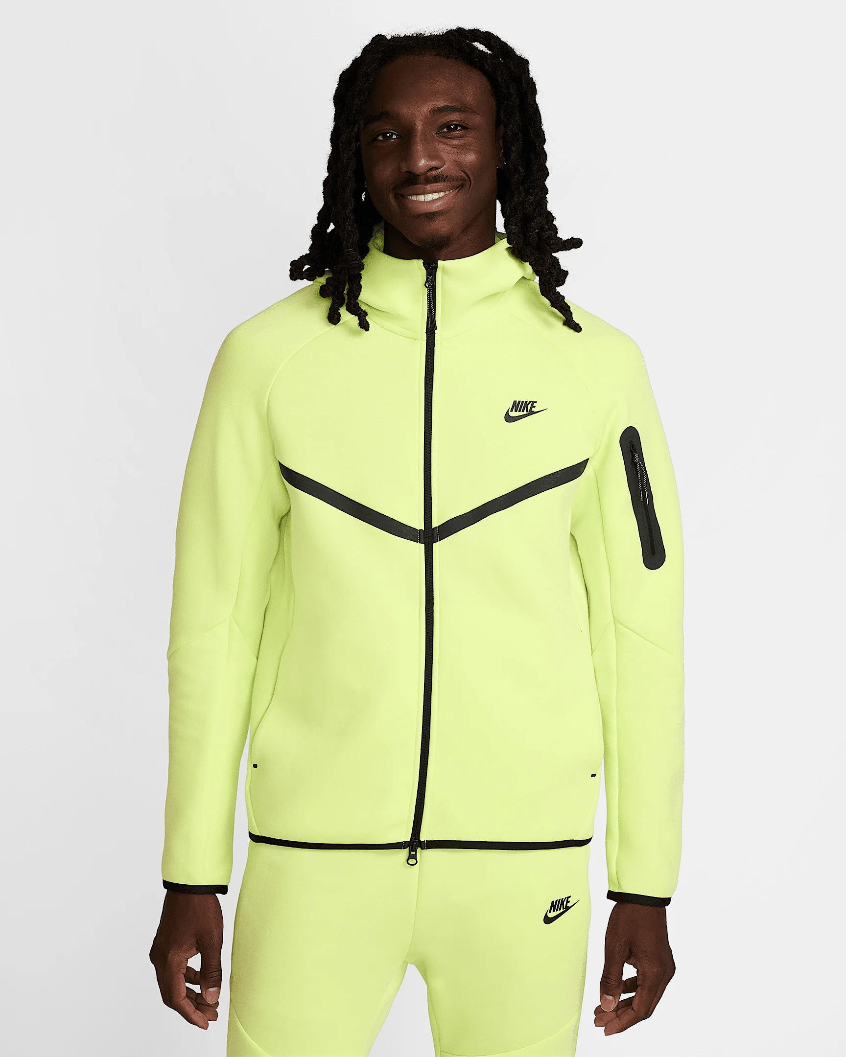 The iconic Tech Fleece Windrunner Hoodie is back. This version has the utility sleeve pocket, hem and cuff binding, and taped chevron that made the original stand out in the streets. Benefits - Our premium, smooth-on-both-sides fleece feels warmer and softer than ever, while keeping the same lightweight build you love. - The standard fit is designed to feel relaxed through the body for easy layering. Product Details - Hand pockets - Zippered sleeve pocket - Body: 53% cotton/47% polyester. Pocket Bag Knuckle Side: 100% cotton. Hood Lining: 53% cotton/47% polyester. - Machine wash - Imported - Shown: Light Lemon Twist/Black - Style: HV0949-736 SIZE & FIT Model is wearing size M and is 6′3″191cm Big & Tall model is wearing size 3XL and is 6'6"198cm Standard fit: easy and traditional